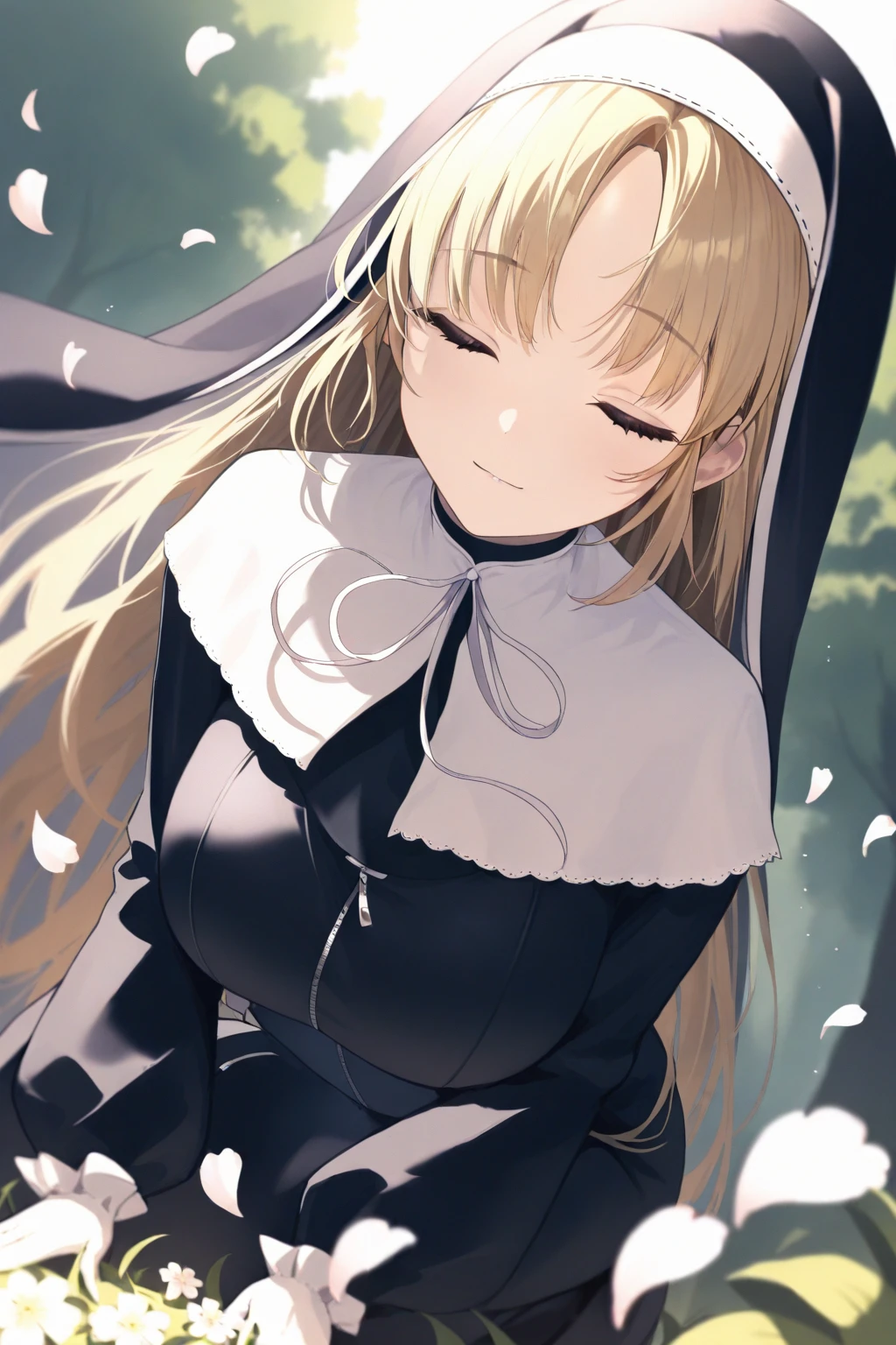 sister claire 1st costume, nun, habit, high collar, white capelet, neck ribbon, long sleeves, white gloves, full-length zipper, brown footwear