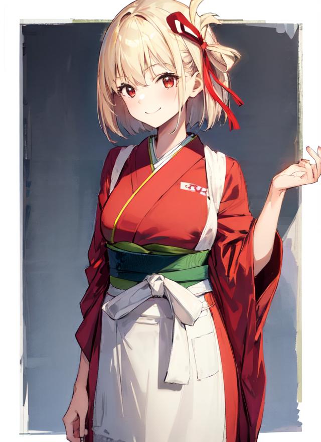 喫茶リコリコの制服:apron, red kimono, kimono, japanese clothes,
