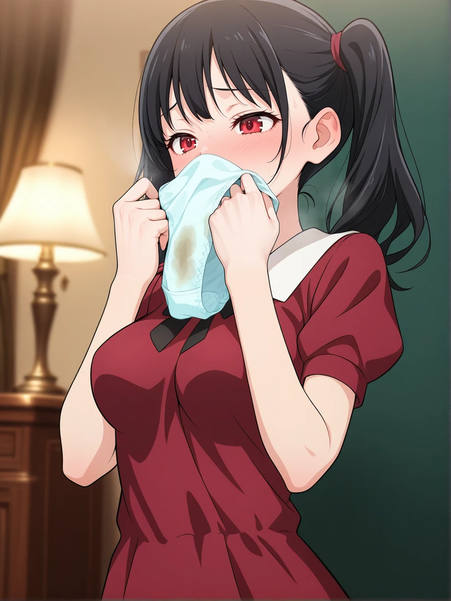 Triggerwords: sniffing panties, panties on face, holding panties,