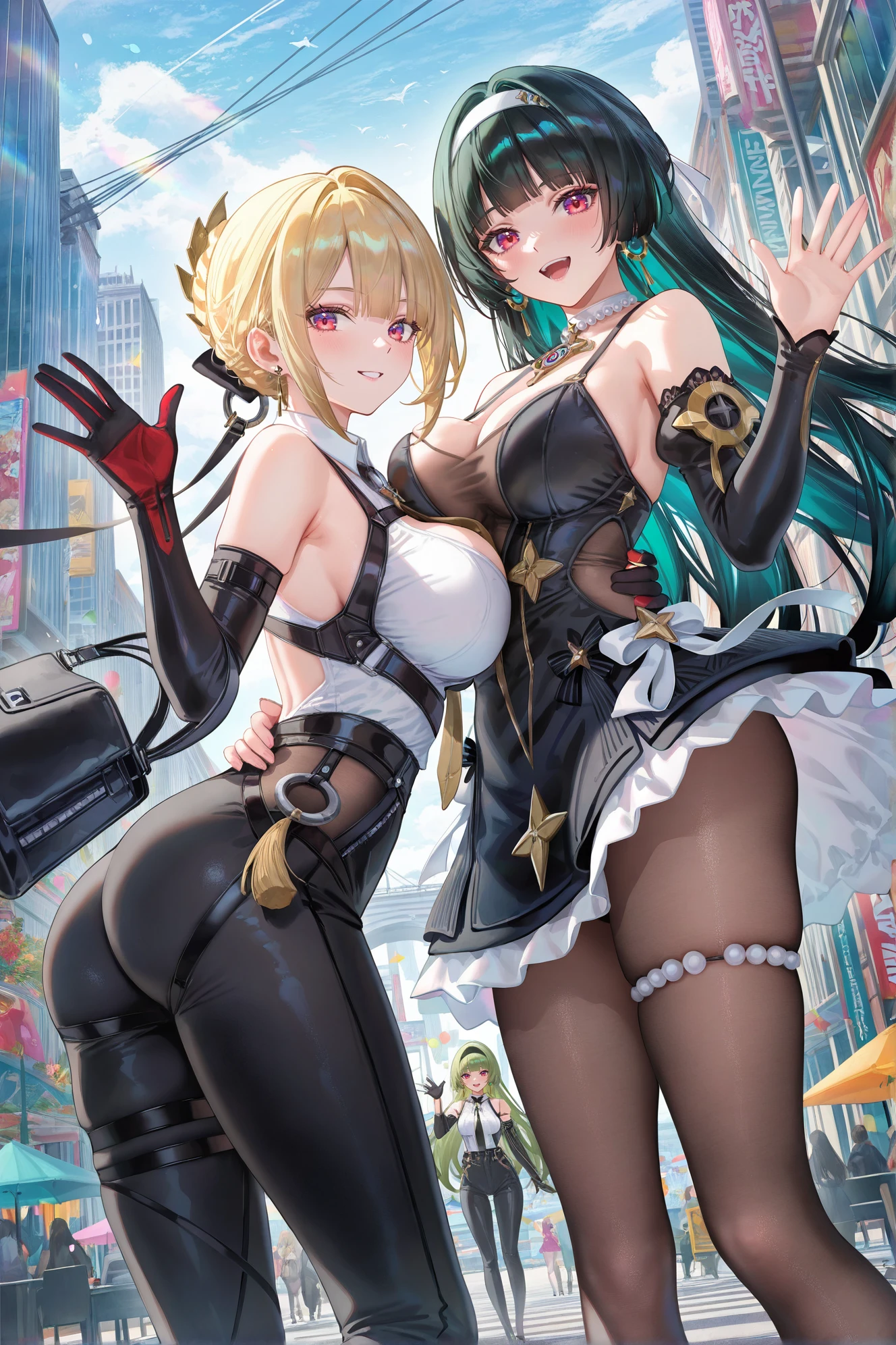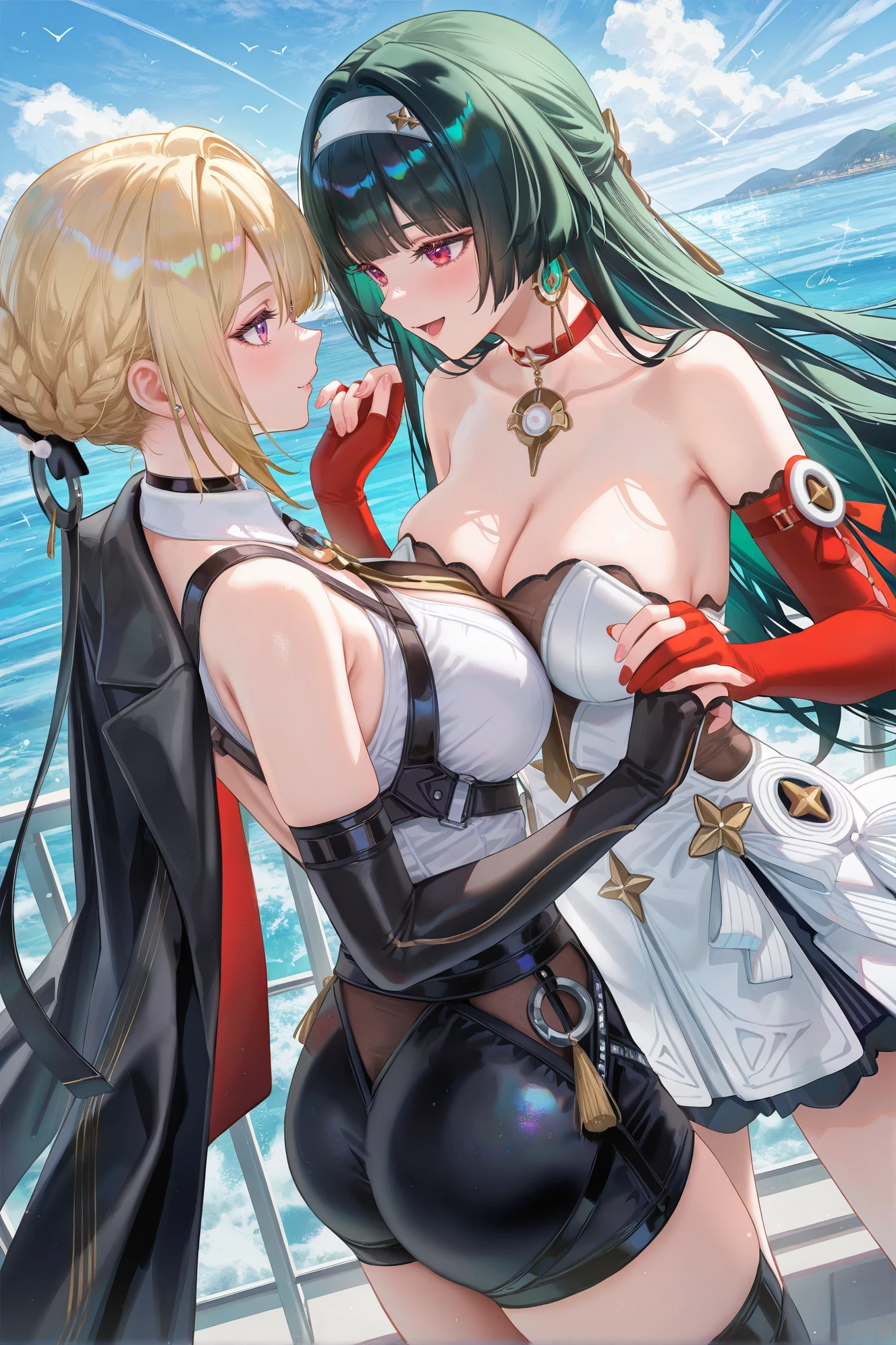 2girls,Evelyn \(zenless zone zero\),Astra Yao \(zenless zone zero\),Evelyn and Astra Yao,multiple girls,breasts,blonde hair,black hair,