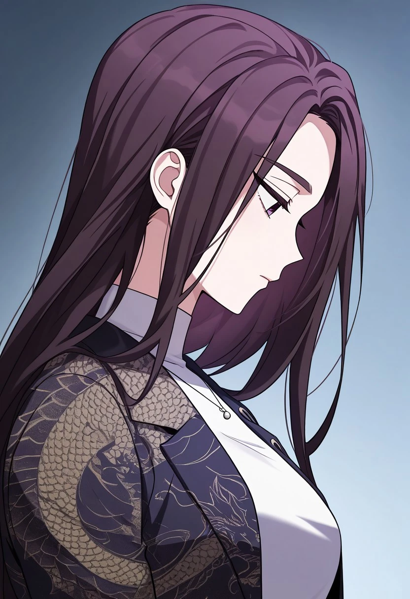 Yi_Byul, dark brown hair, dark purple eyes, long hair, very long hair