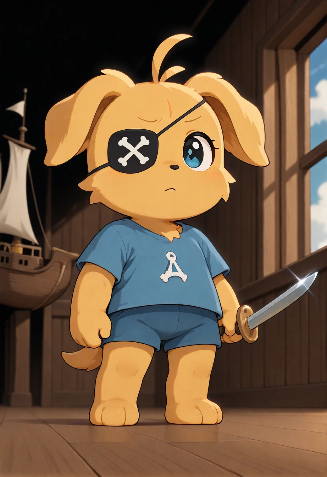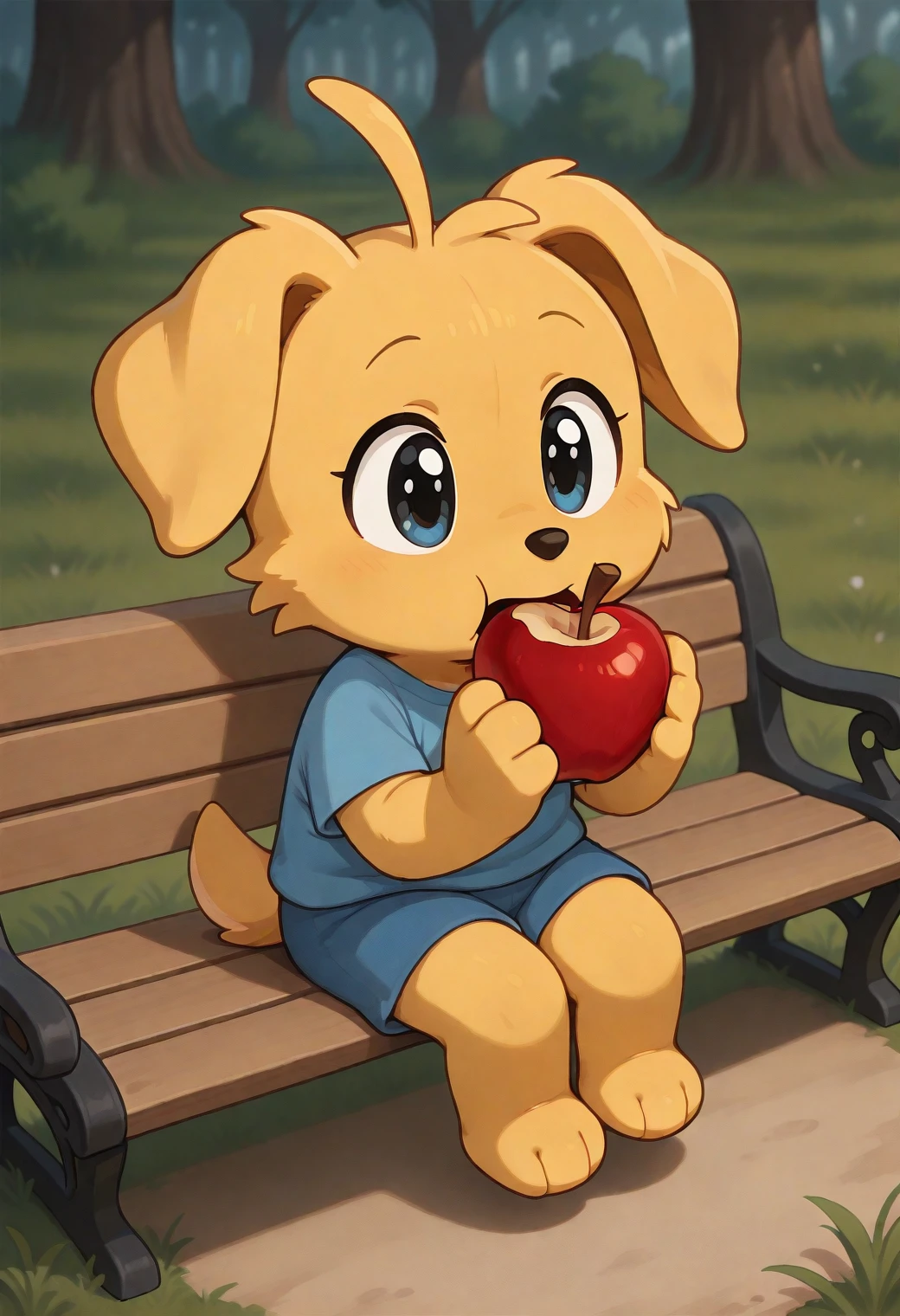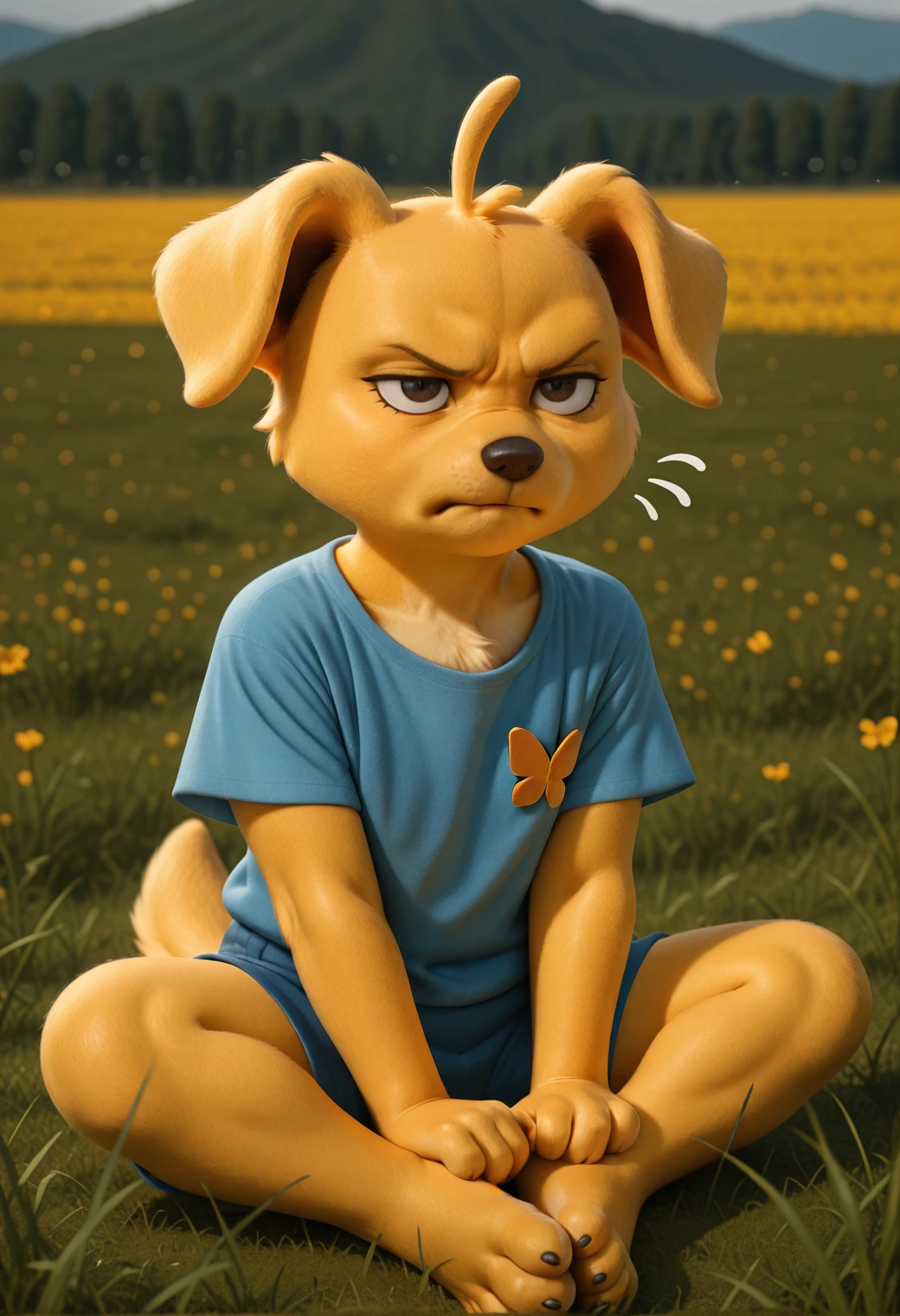 Optional Prompting: yellow fur, blue shirt, blue shorts