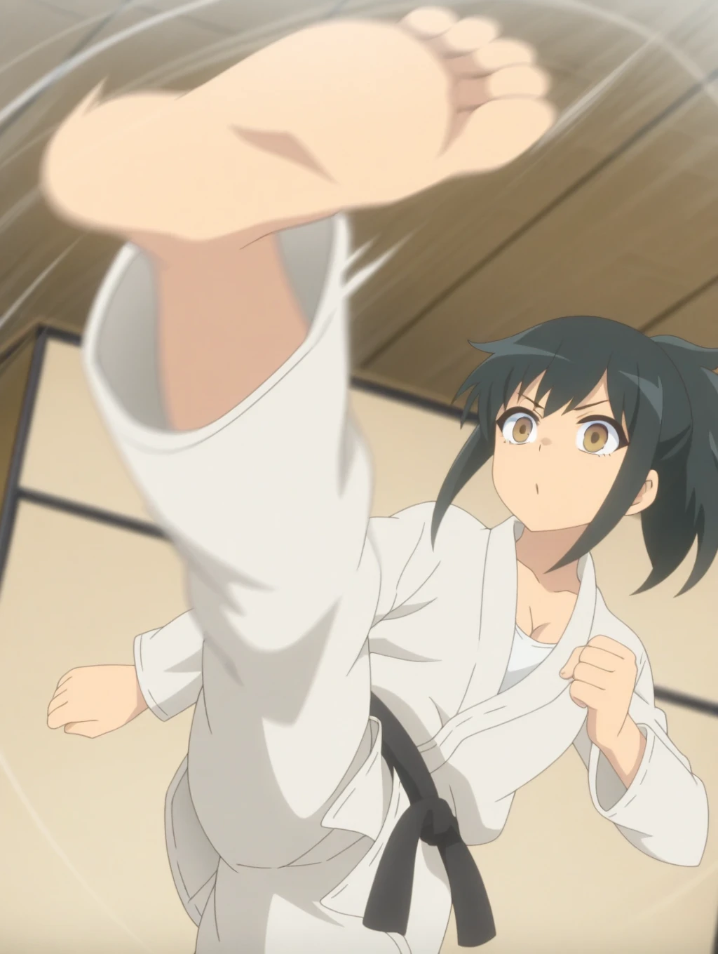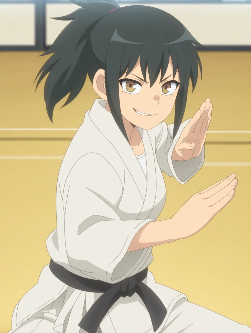 Orihara_LW, anime screenshot, black hair, ponytail, brown eyes, sidelocks