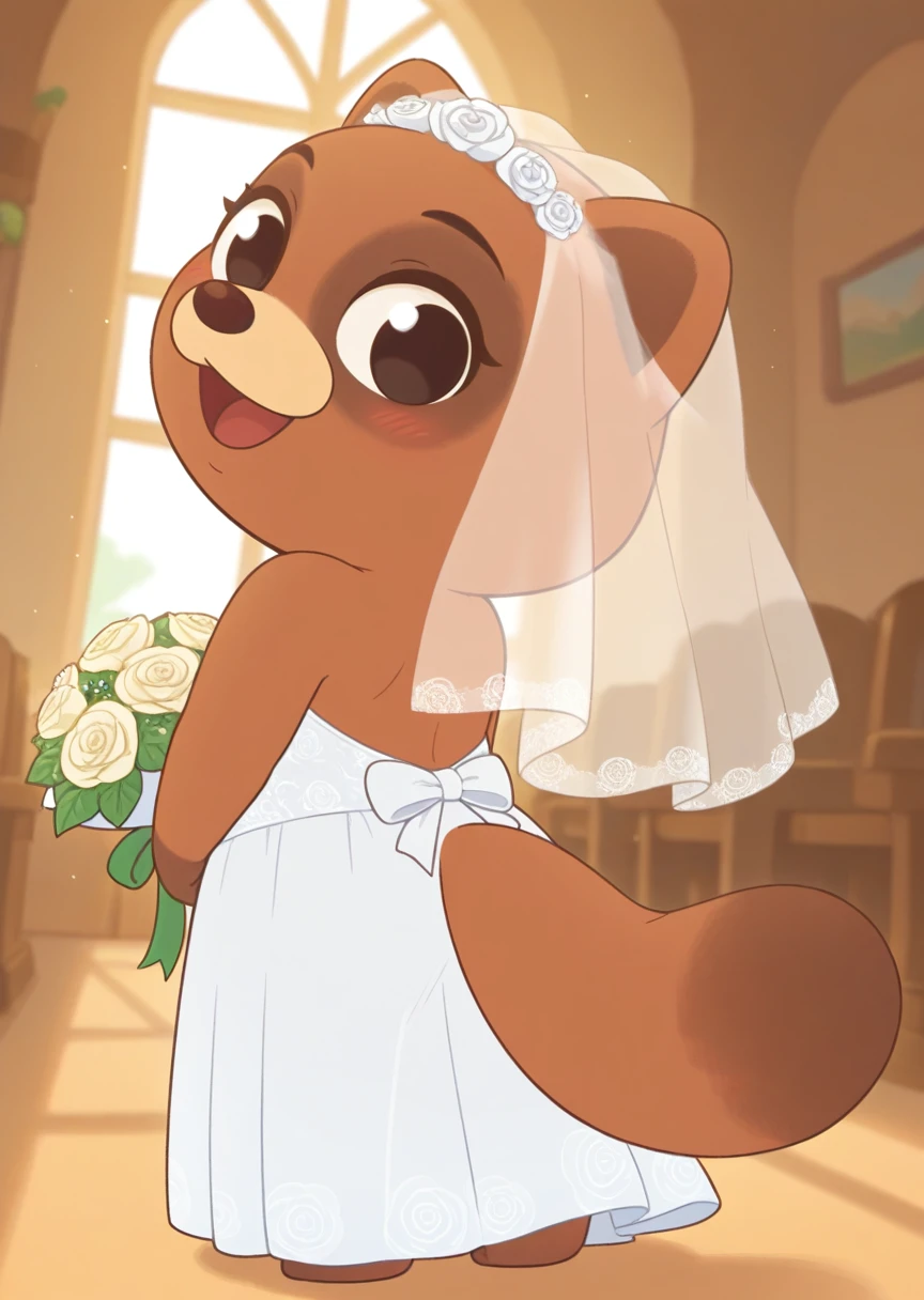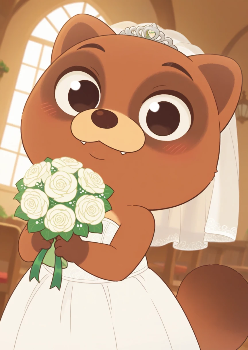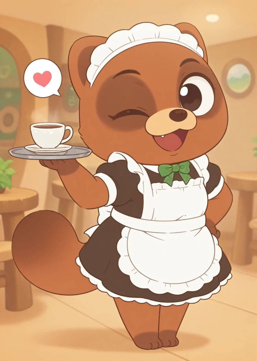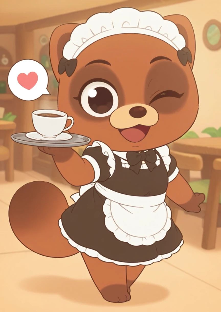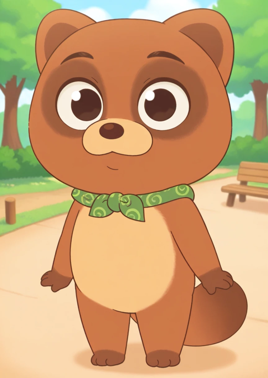prompts: Takitanu, furry, chibi, brown fur, scarf, black eyes,