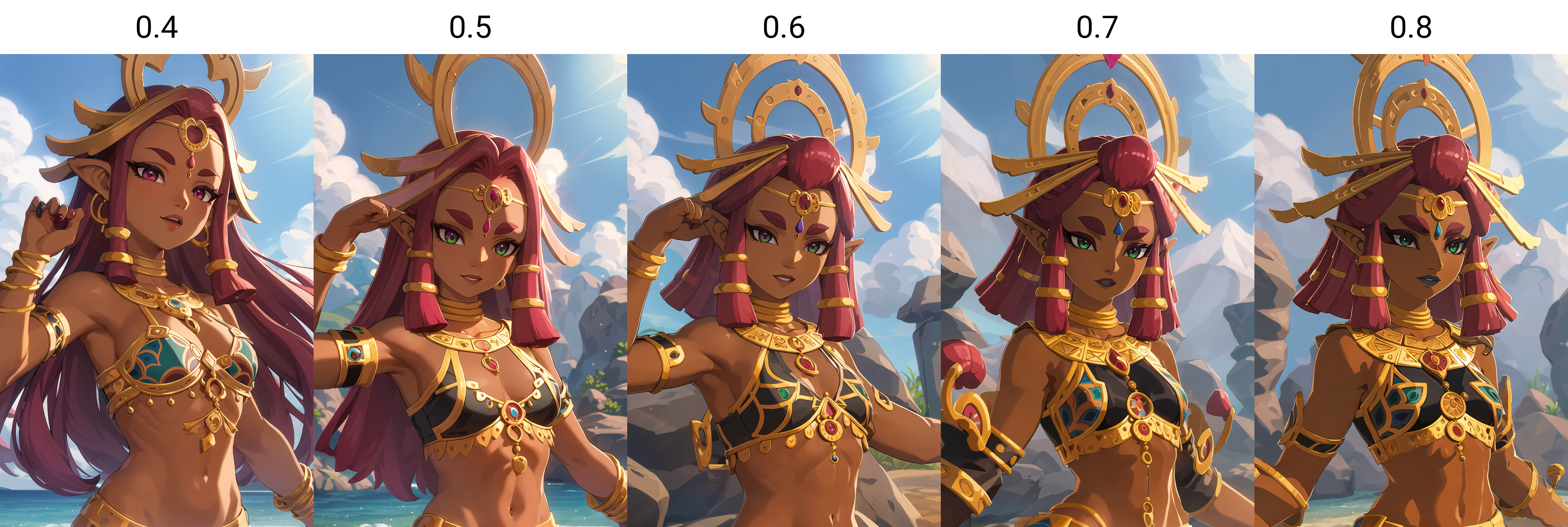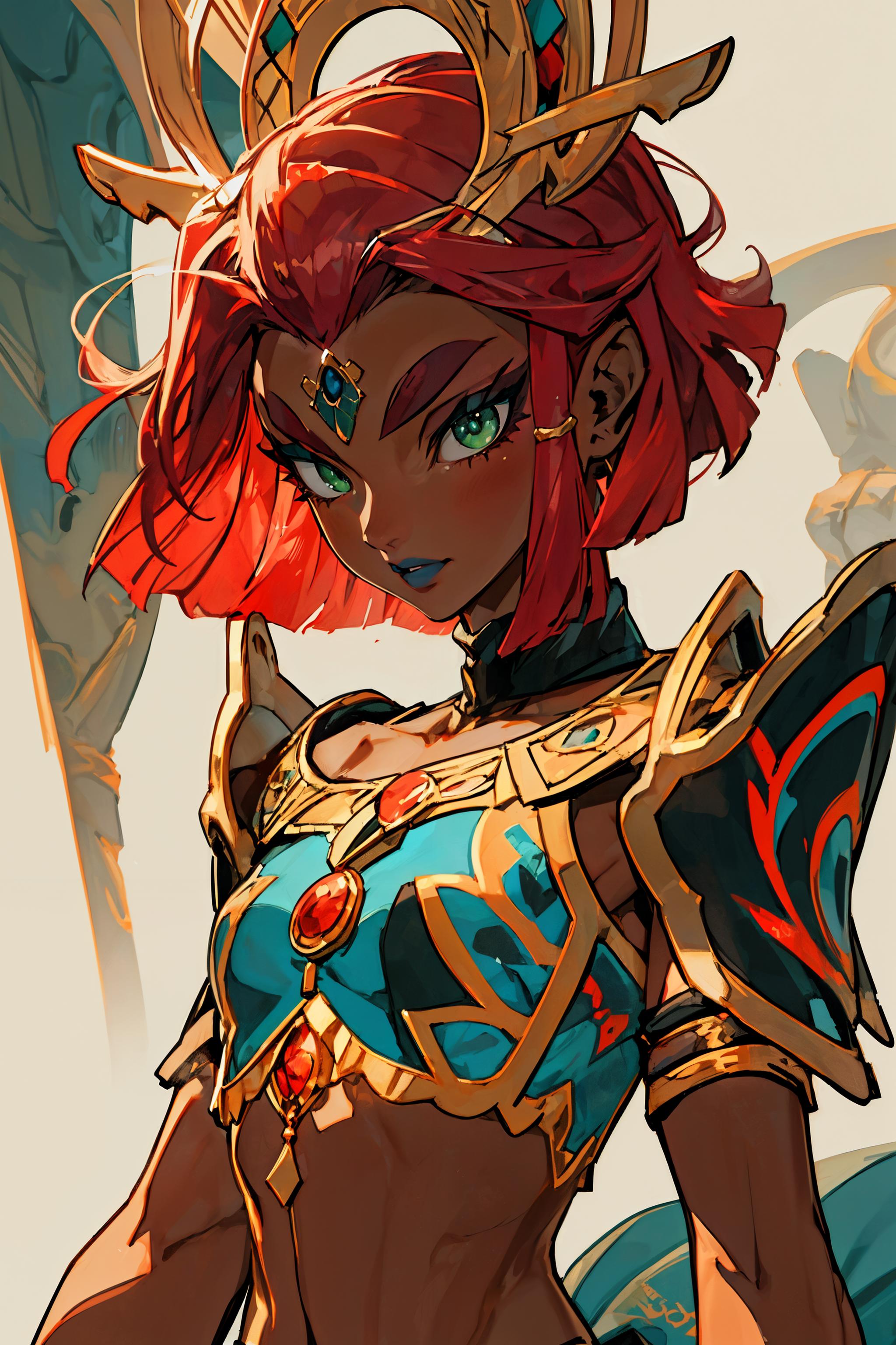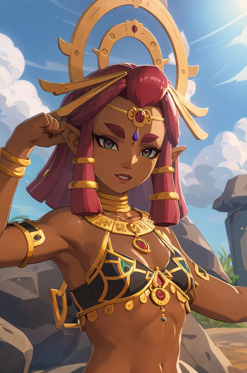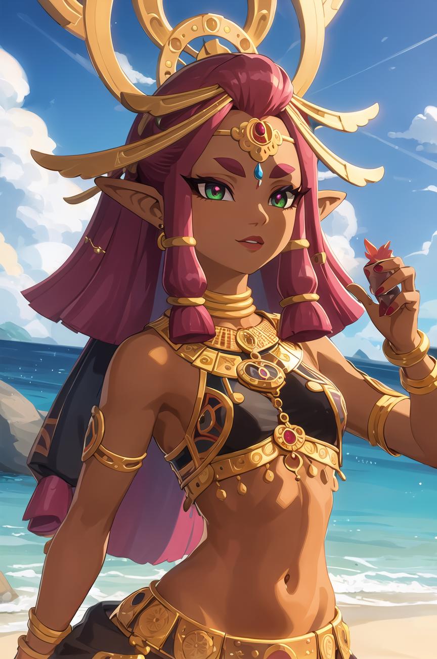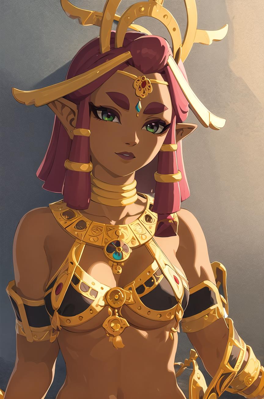 <lora:riju_v2:0.5>,1z_riju\(totk\), 1girl, solo,breasts,jewelry,achieve the same effect as me, make sure to enable 'Hires.fix'.