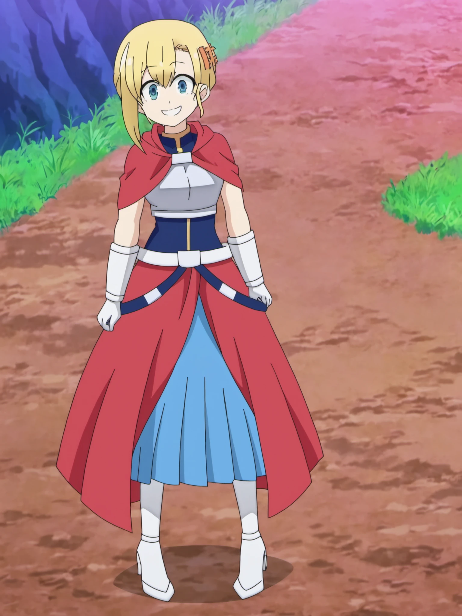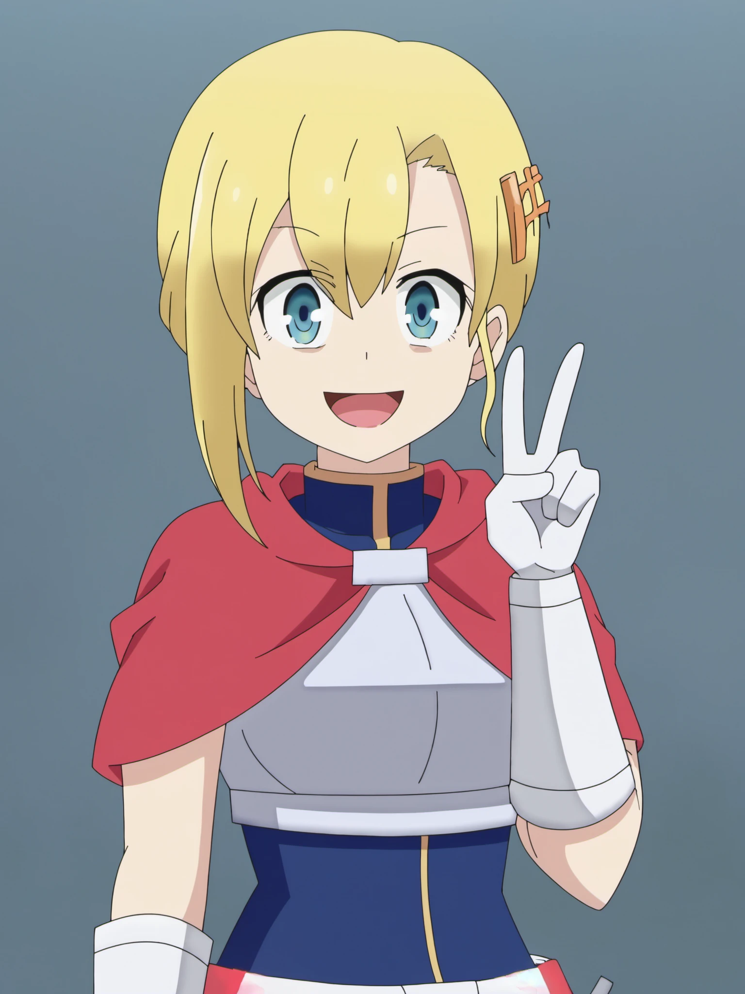 V1 Base prompt: francette, blue eyes, blonde hair, armored dress, chest armor, white gloves, hair ornament
