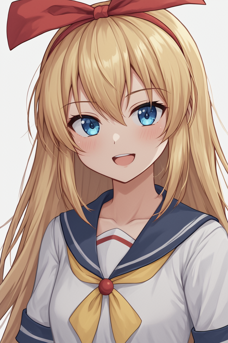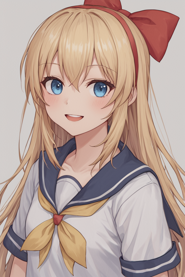 regina, 1girl, solo, long hair, blue eyes, blonde hair, dress, bow, ribbon,