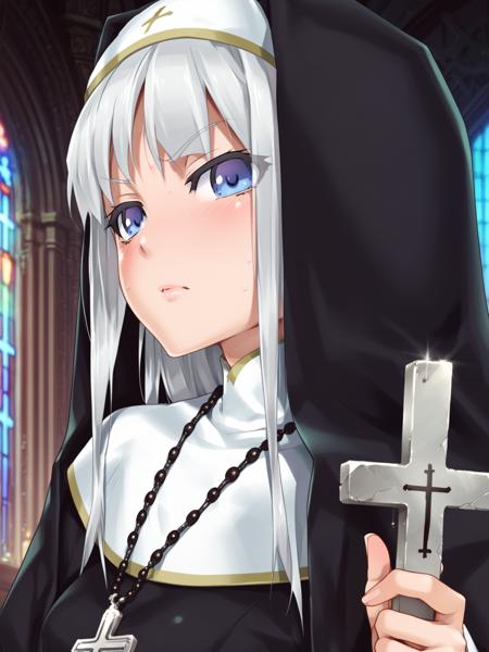- Nun: blue eyes, nun, habit, necklace, rosary, church