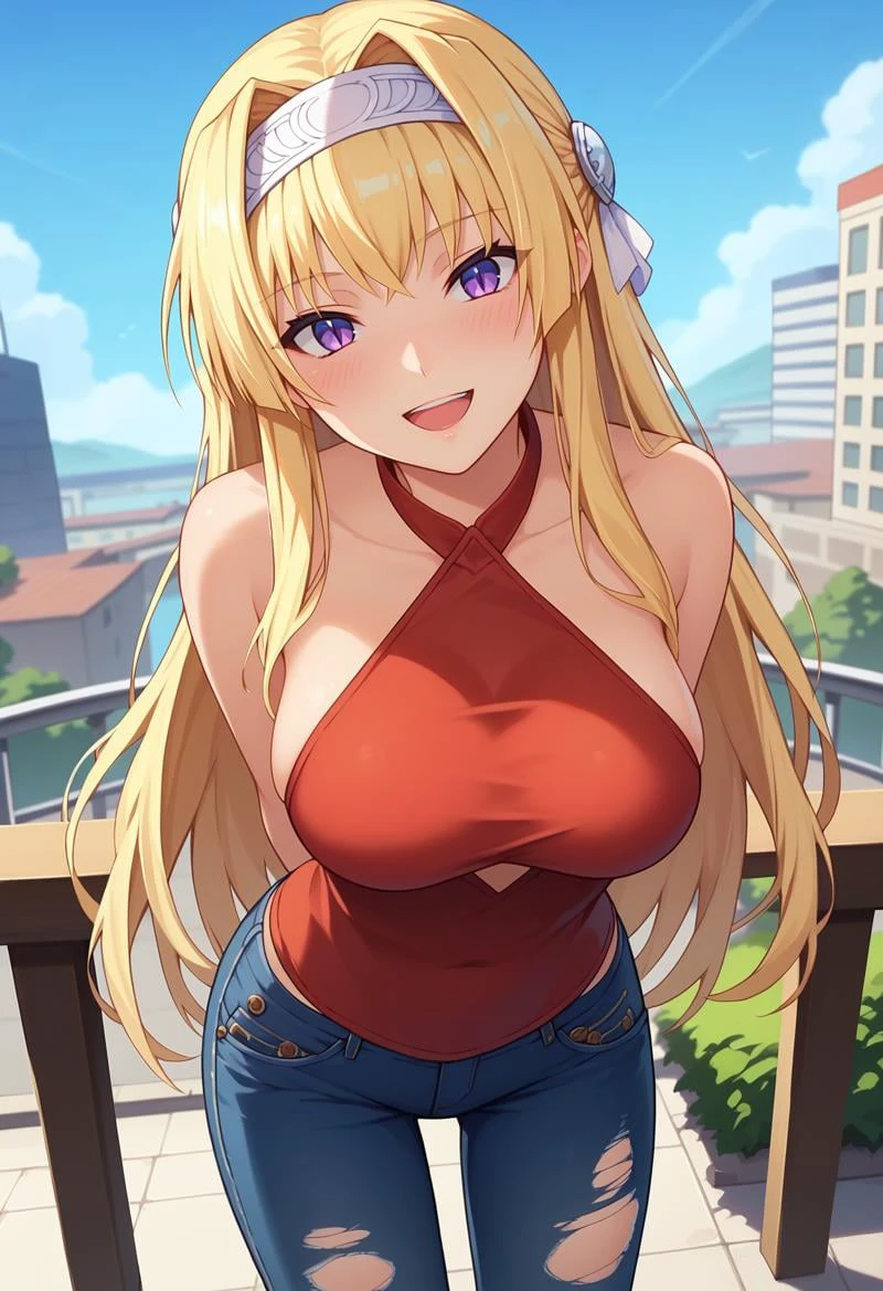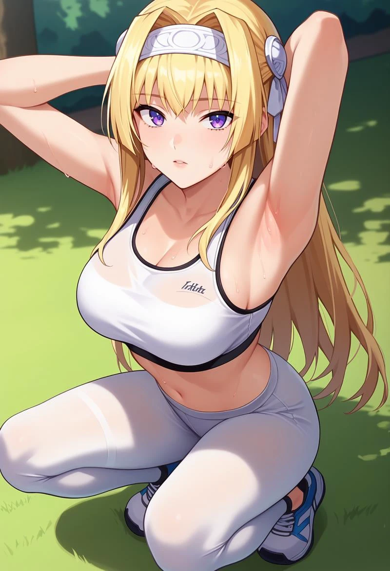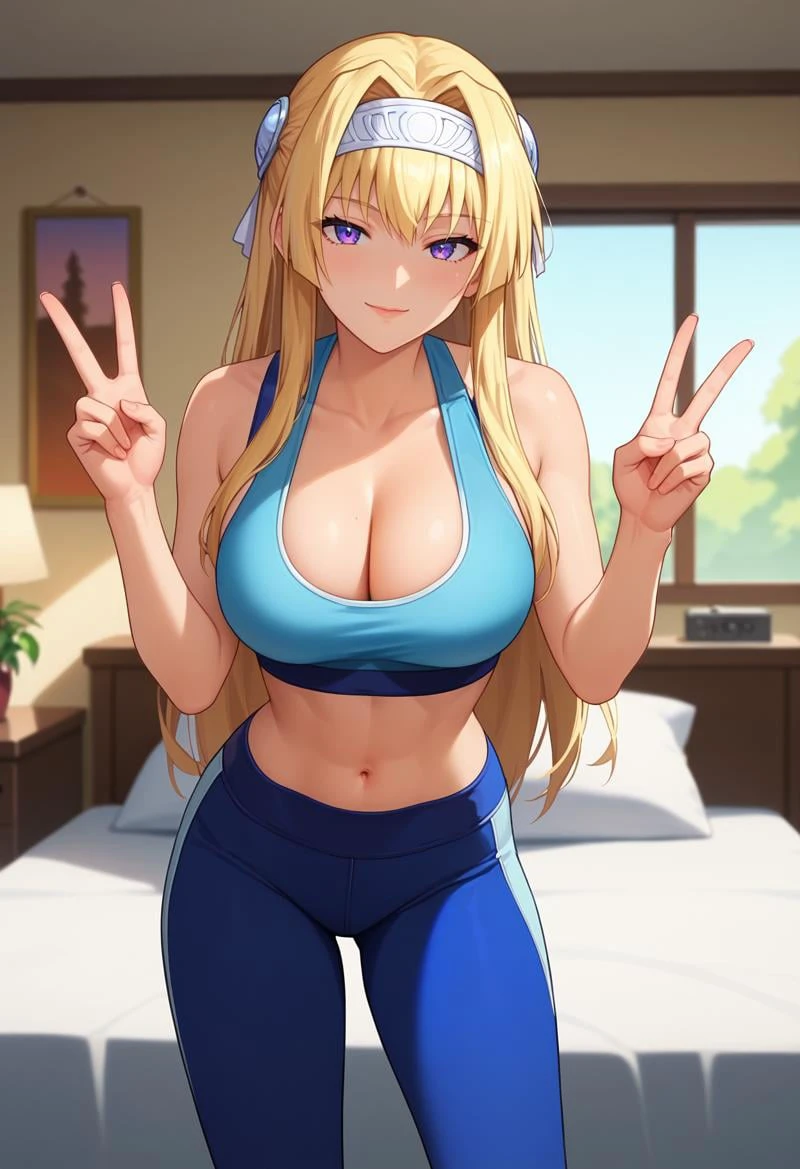 KJOalicia, blonde hair, purple eyes, long hair, headband,