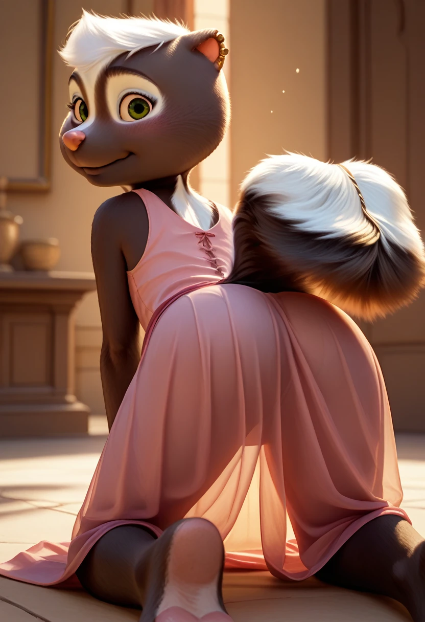 meg, skunk, green eyes, furry, vest, belt, skunk tail