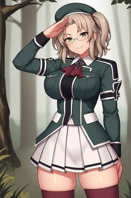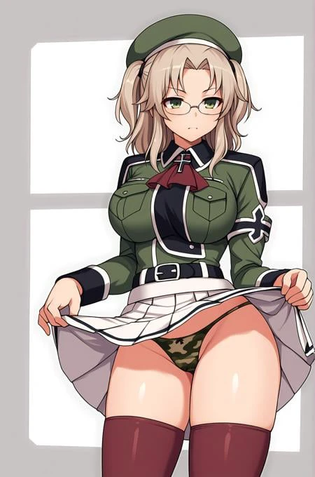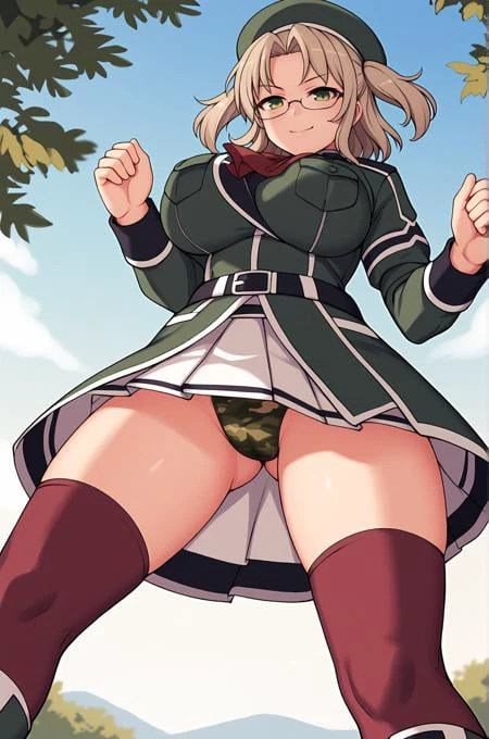 Imu_shinobi, beret, neckerchief, military uniform, long sleeves, white skirt, brown legwear, boots, belt