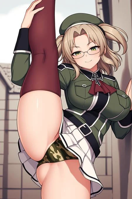 Imu_XL, green eyes, glasses, platinum hair, twintails, two side up, large breasts