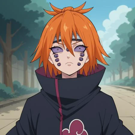 Recommended weight: 0.8 - 0.9Useful tags:Head - orange hair, short hair, hair between eyes, facial mark (or face piercing), purple sclera, purple eyes, ringed eyes, forehead protector, headband,Outfit - akatsuki coat, black coat, long sleeves, sandals, white pants, nail polish, red nail polish,Other - body piercing, nipple bar,Using ADetailer , Inpaint or Hires fix is also recommended.