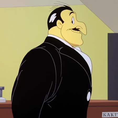 HareConditioned, 1boy, solo, black hair, black eyes, yellow skin, formal, black suit, white shirt pants, black footwear, grey pants,