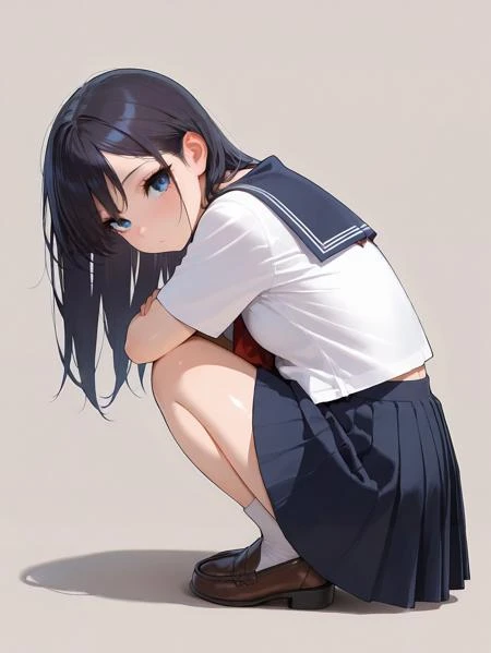 <lora:crouching_illustrious_V1.0:1> crouching,rounding the back,squatting,