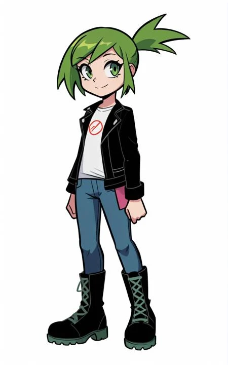 Reinforcement Tags: green hair, short hair, ponytail, green eyes