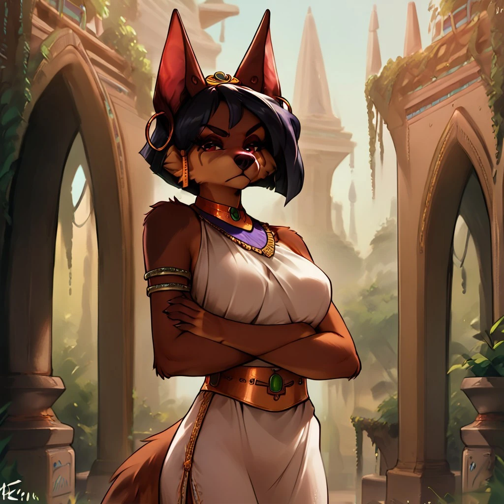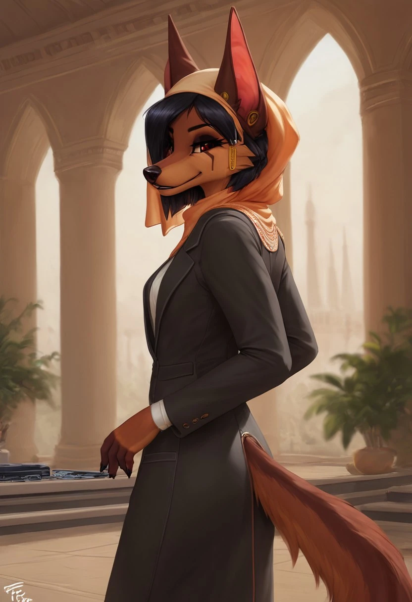 kesis, jackal, canine, black hair, red eyes, brown fur