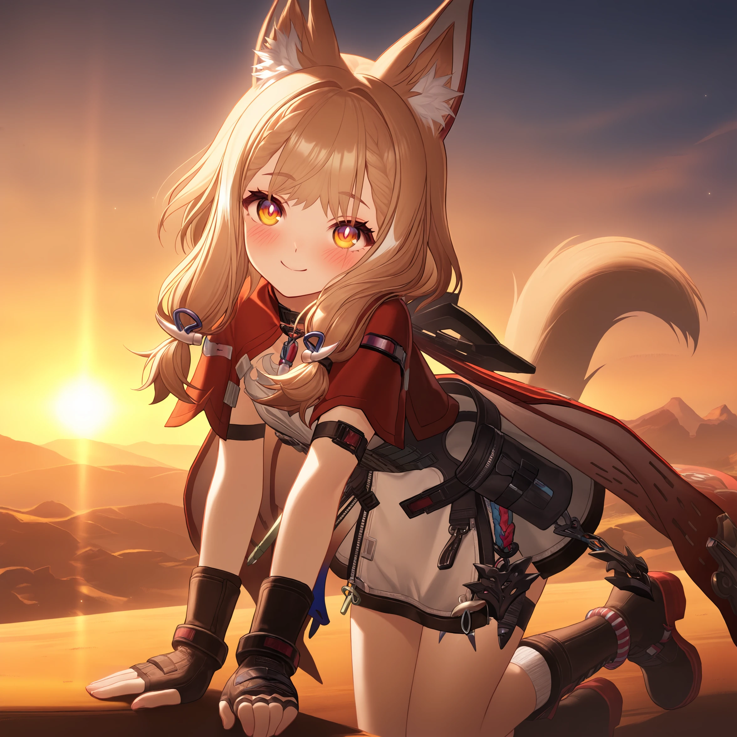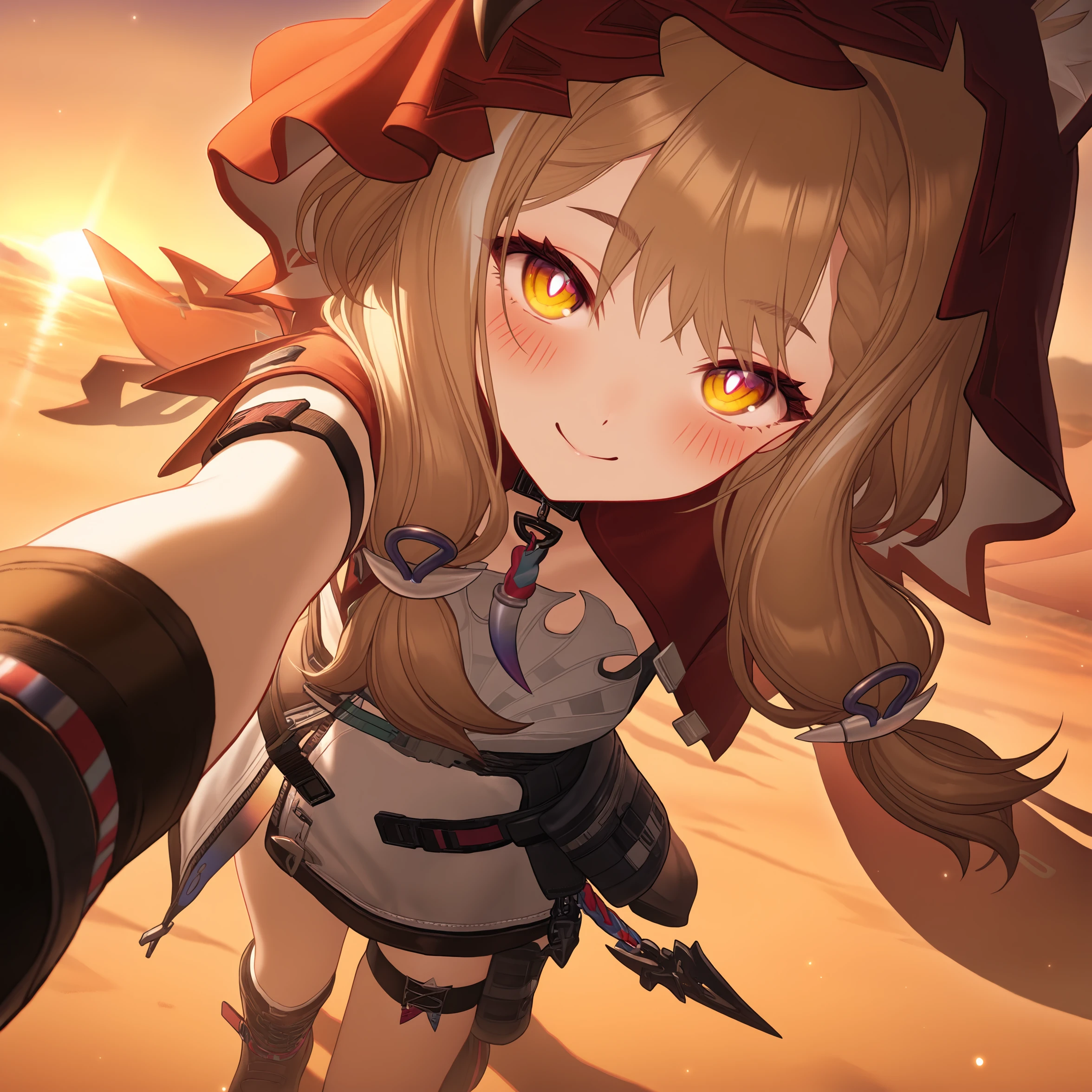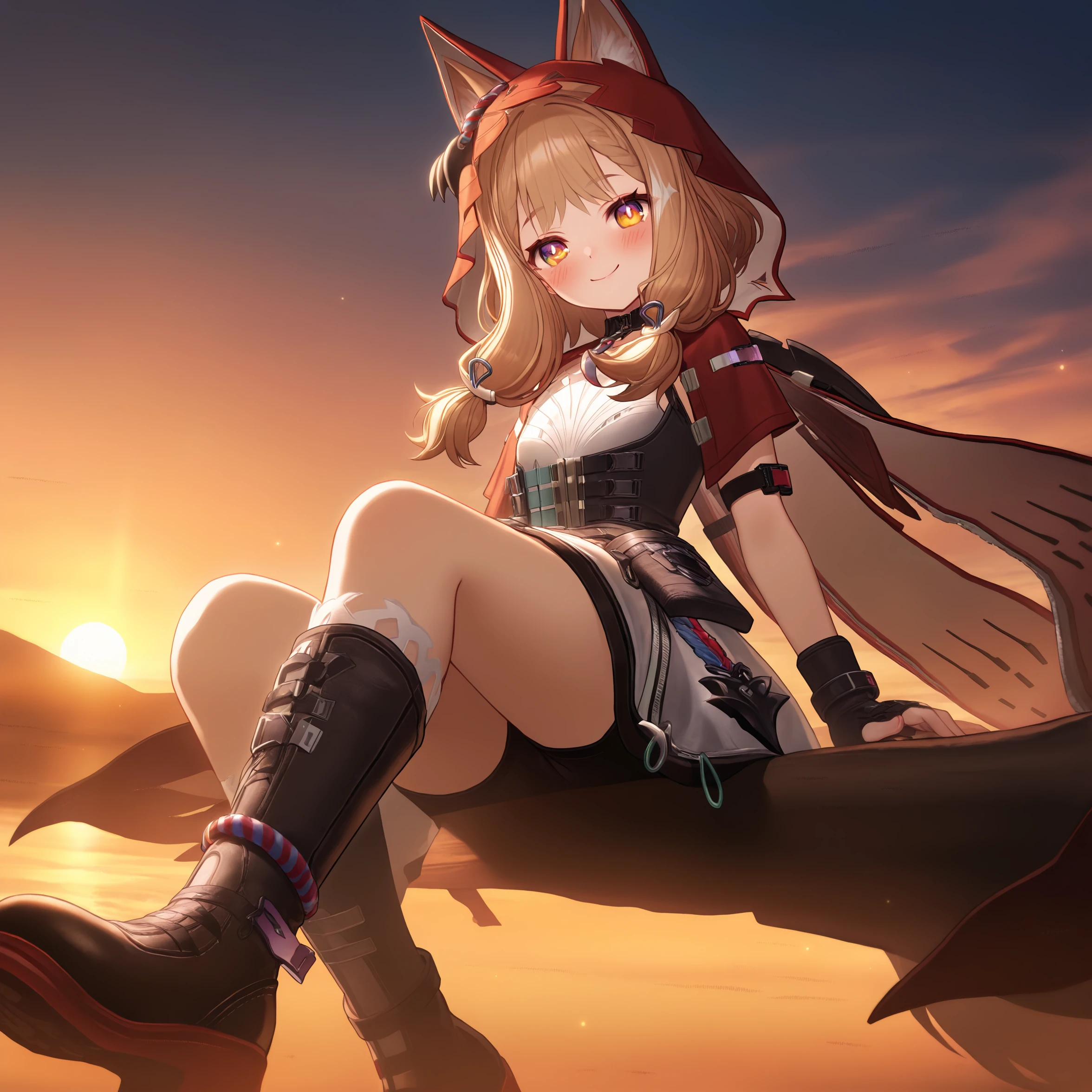 masterpiece, best quality, very aesthetic, newest, hires, Rossi, 1girl, solo, smile, blush, looking at viewer, closed mouth, upper body, black gloves, simple background,全身可尝试添加full body, boots 等。