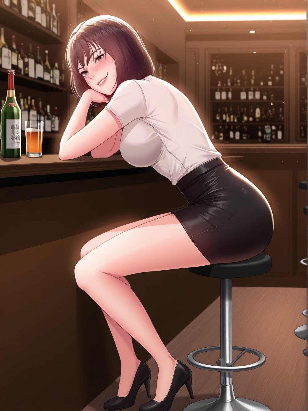 white shirt,short sleeves,pencil skirt,