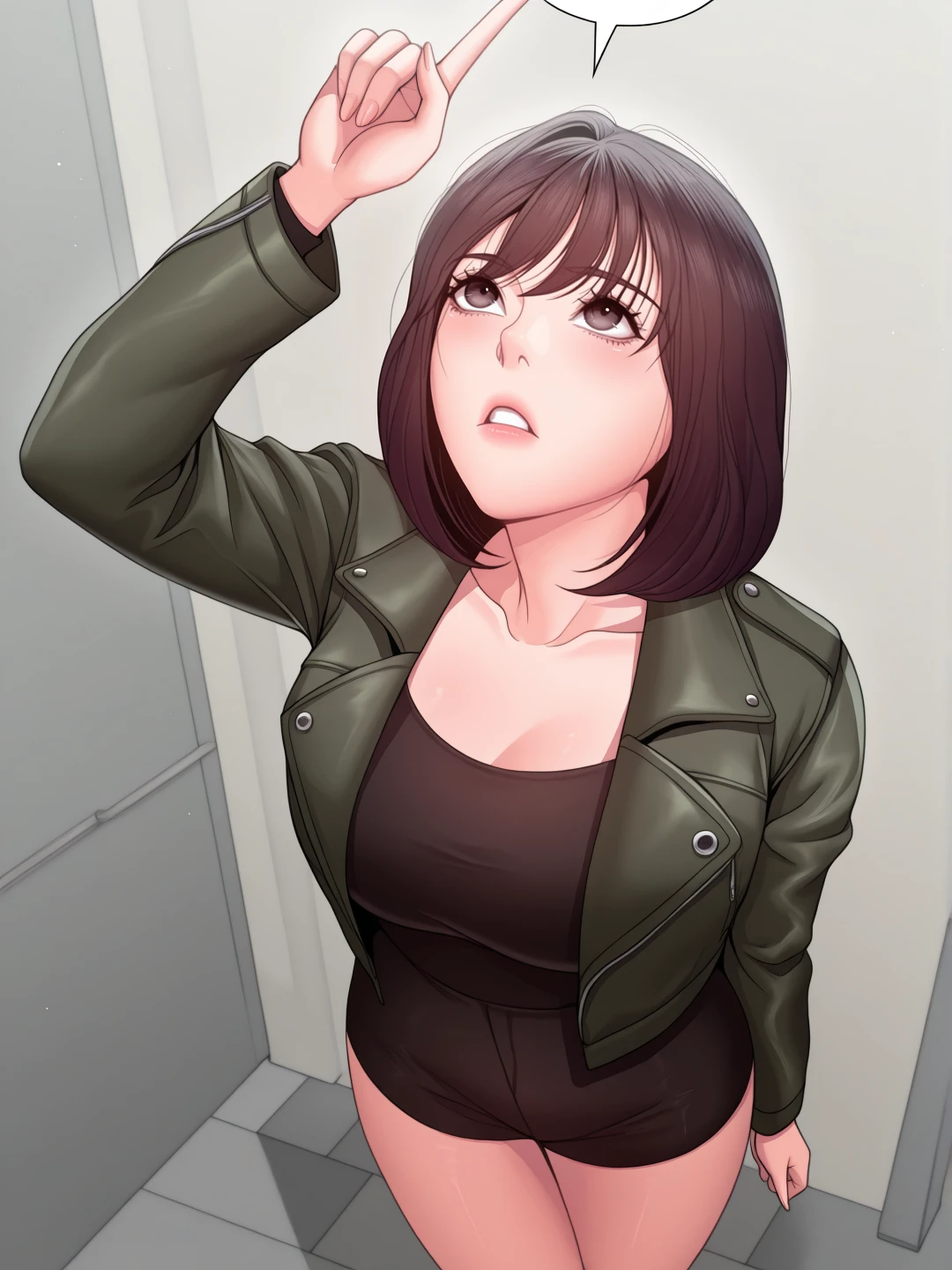 bra visible through clothes, high-waist shorts