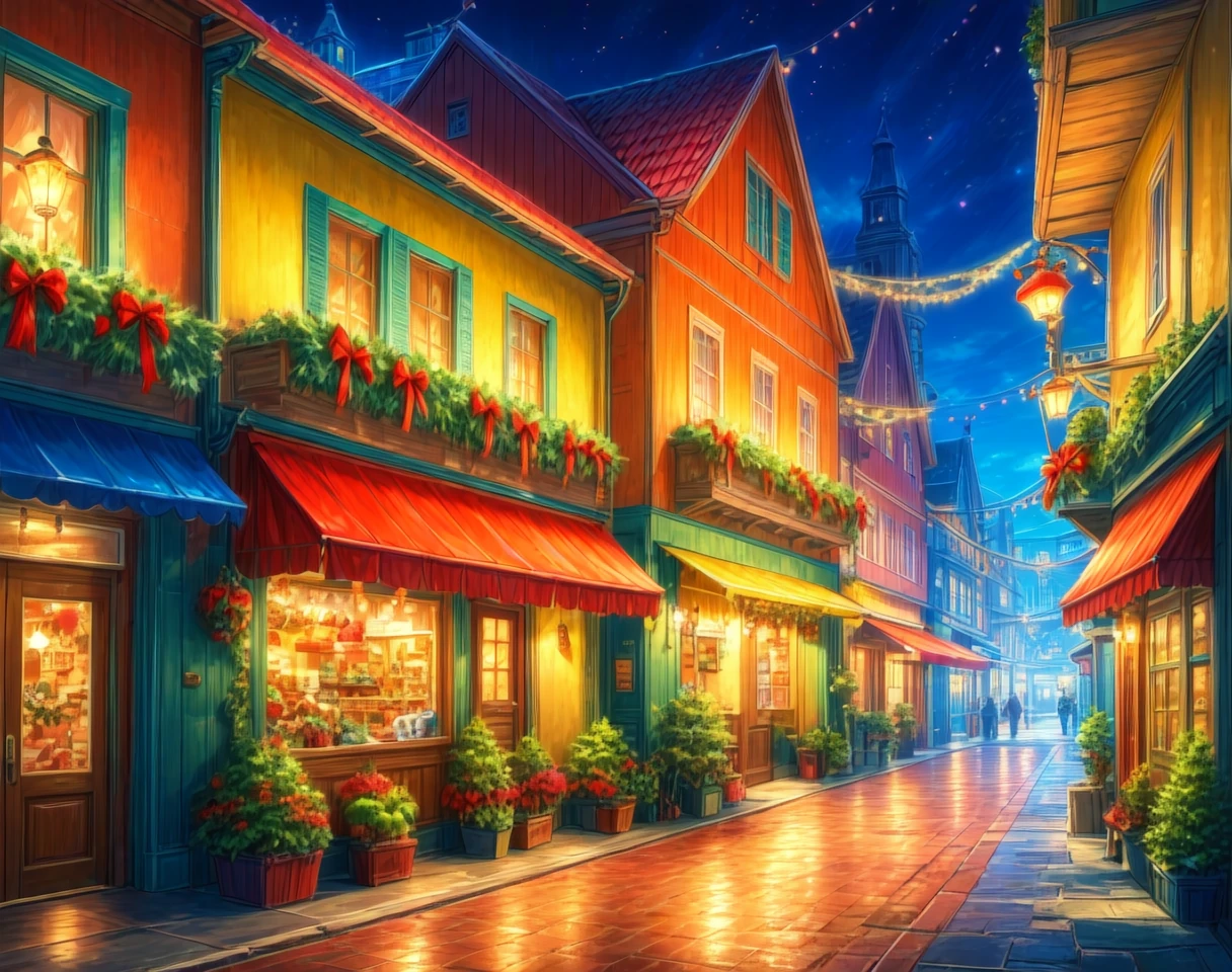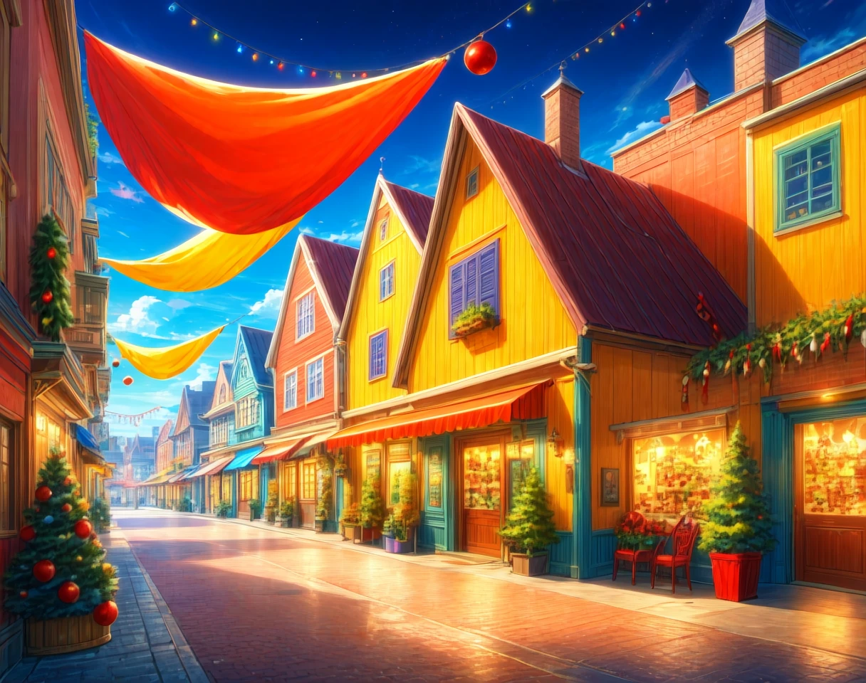 This is an SDXL lora for a Christmas Town style exterior architecture design. I was between having this as an architecture style lora and a background lora. In the end I choose the architecture one since a Christmas Town is a town that did some exterior architectural design to decorate for Christmas, and is not always decorated as such all year long. Since it involves exterior design, I decided it fits more as an architecture lora.