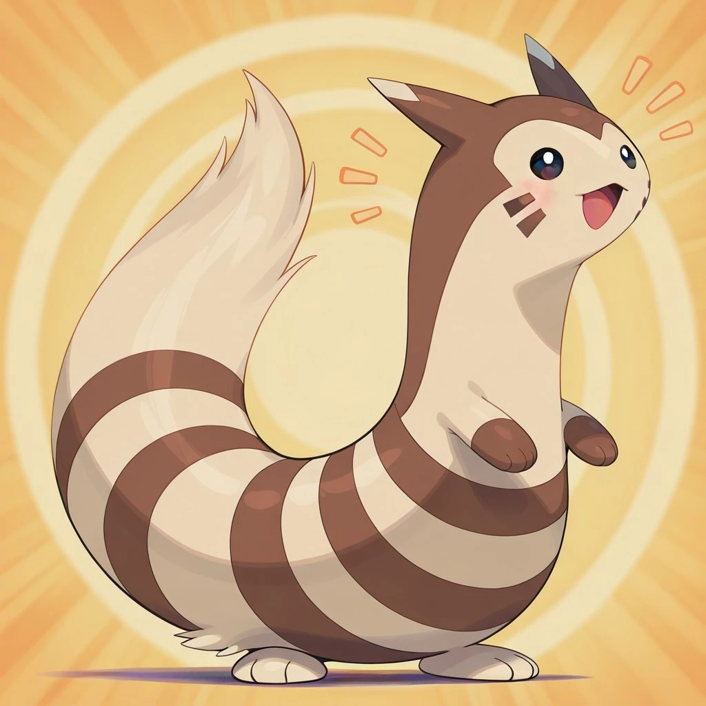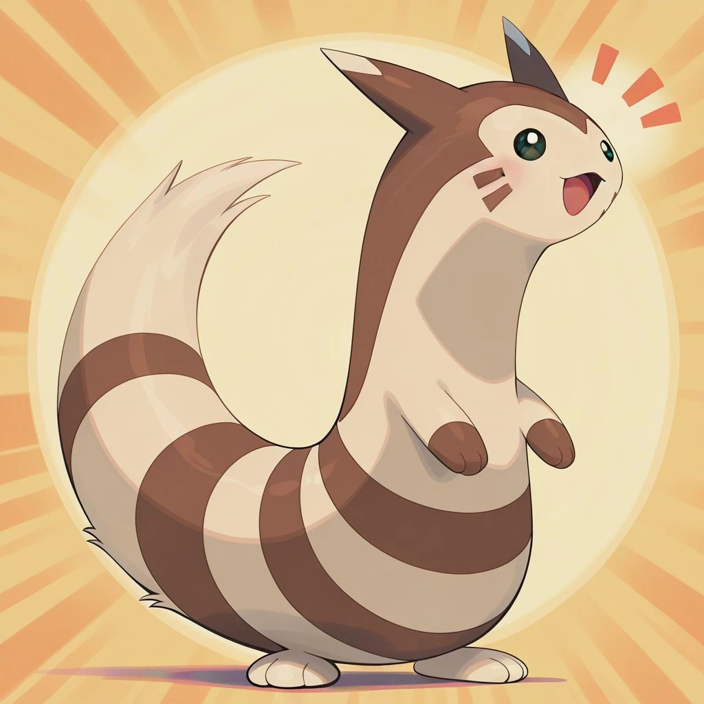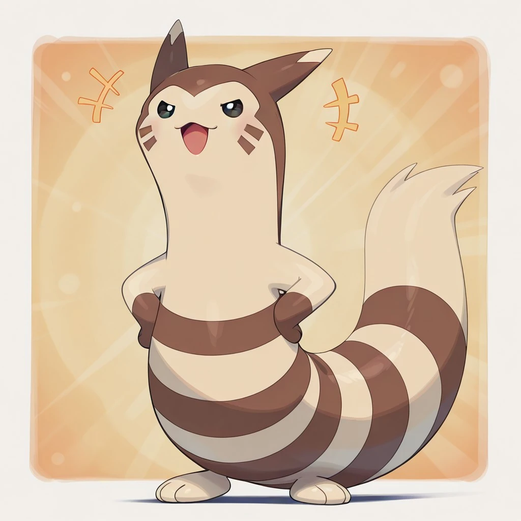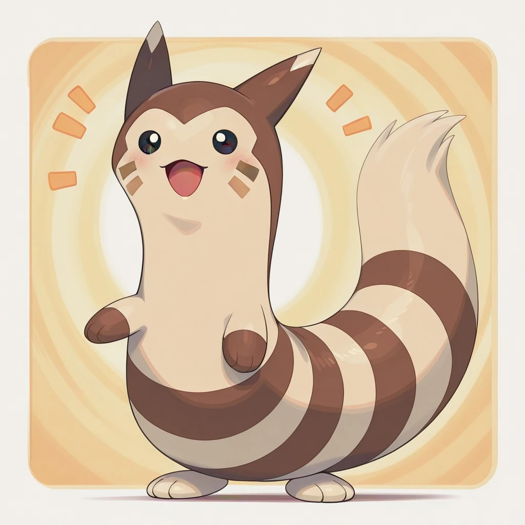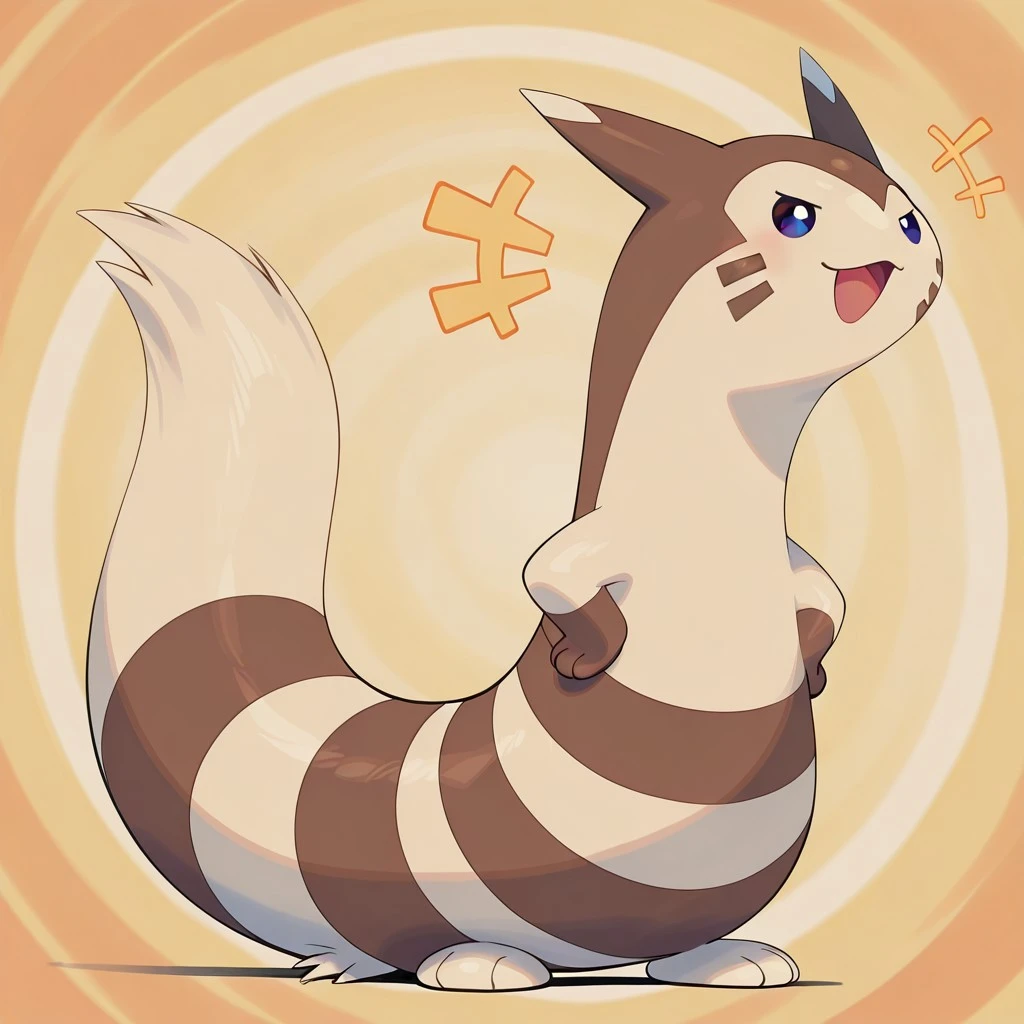 furret, pokemon (creature), ferret, beige fur, brown fur, stripes, brown facial markings, brown hands, beige feet, brown facial markings, beige ear tips, dark eyes
