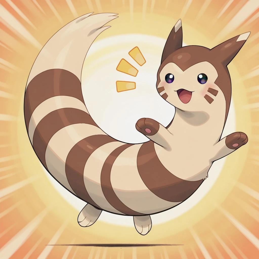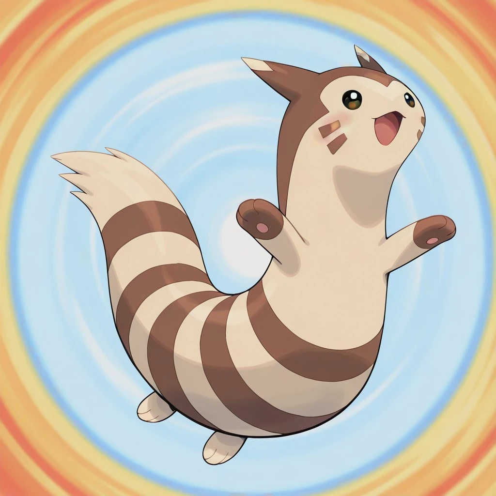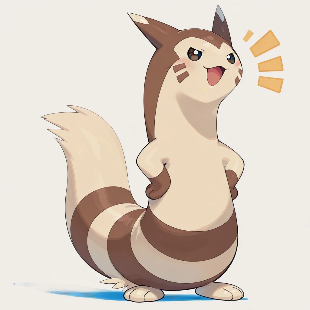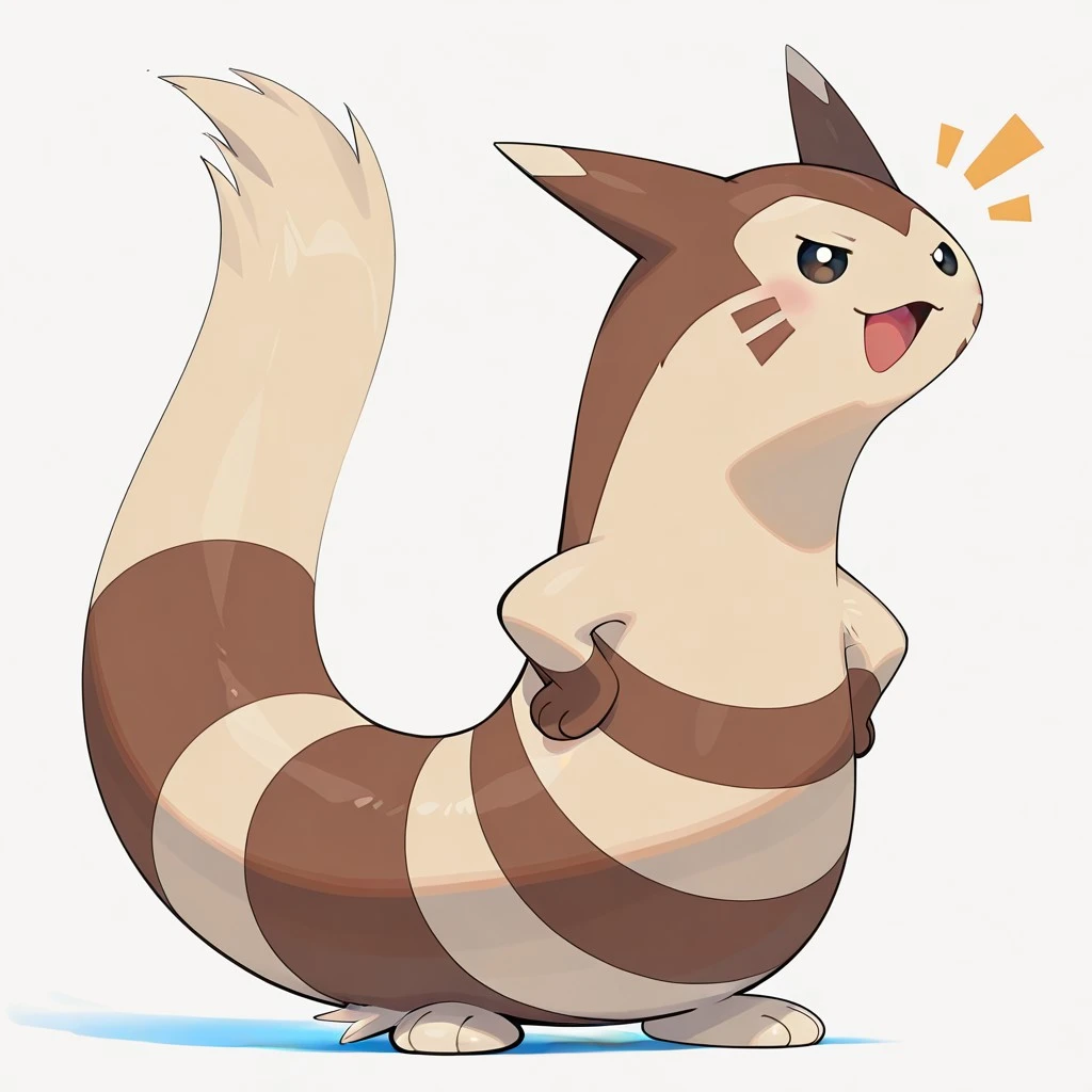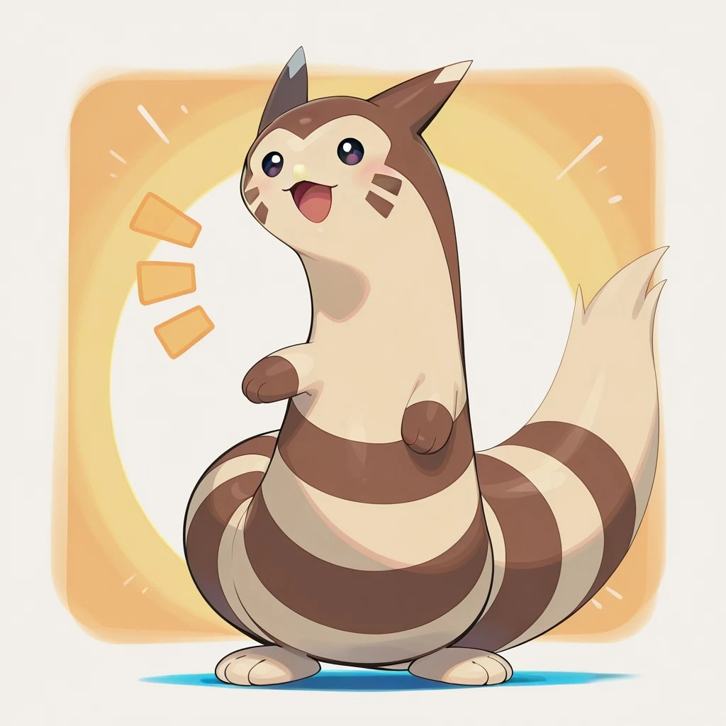 furret, pokemon (creature), ferret, beige fur, brown fur, stripes, brown facial markings, brown hands, beige feet, brown facial markings, beige ear tips, dark eyes