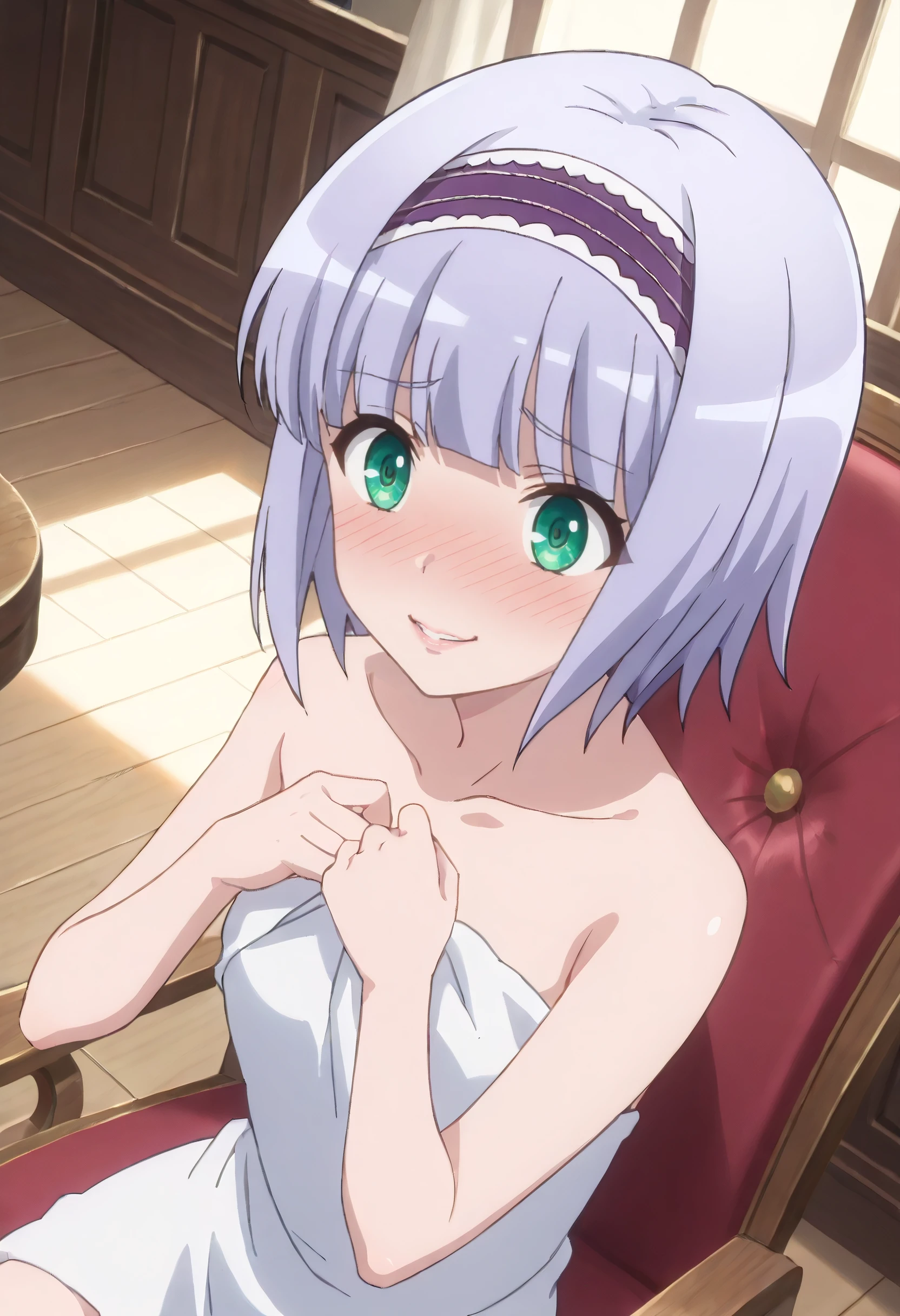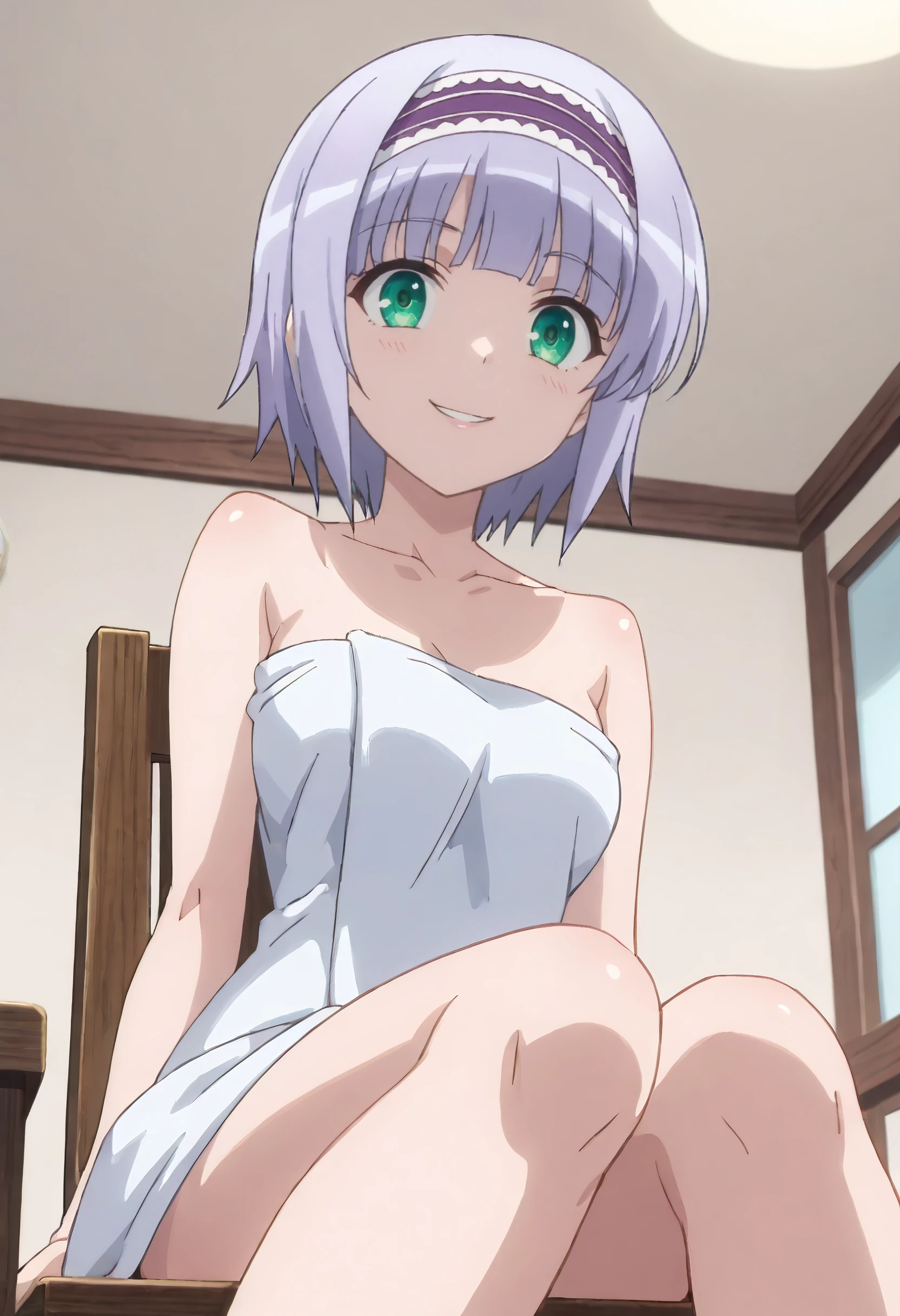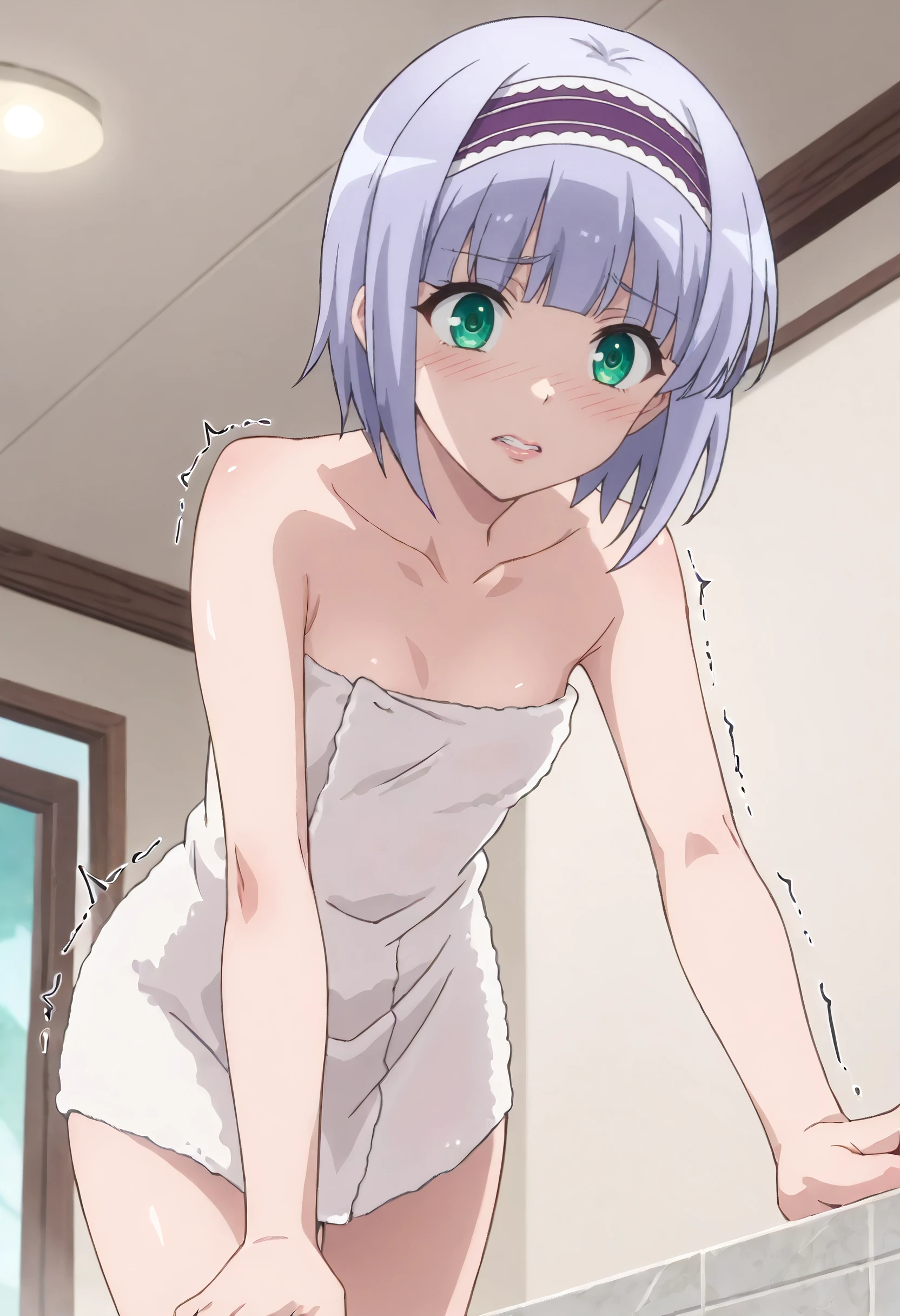 LinzeTowel, naked towel, hairband, towel, collarbone, bare shoulders,