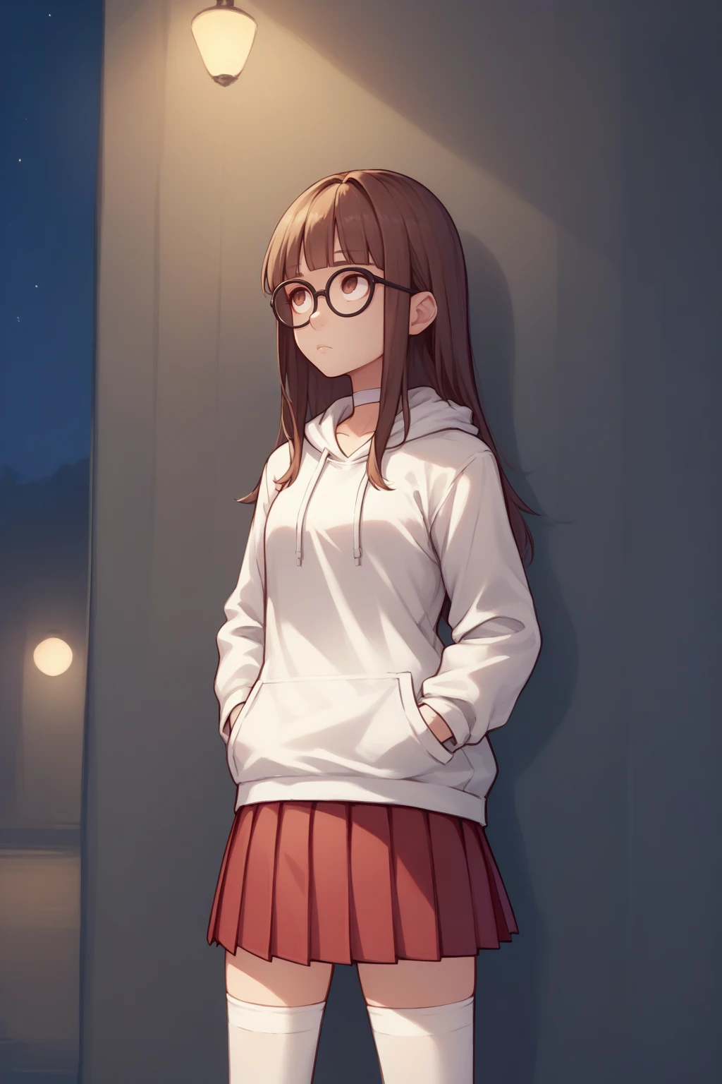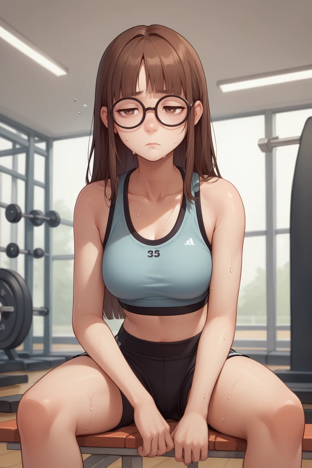 Main Prompt: NSAlicePortia, brown hair, long hair, brown eyes, blunt bangs, glasses