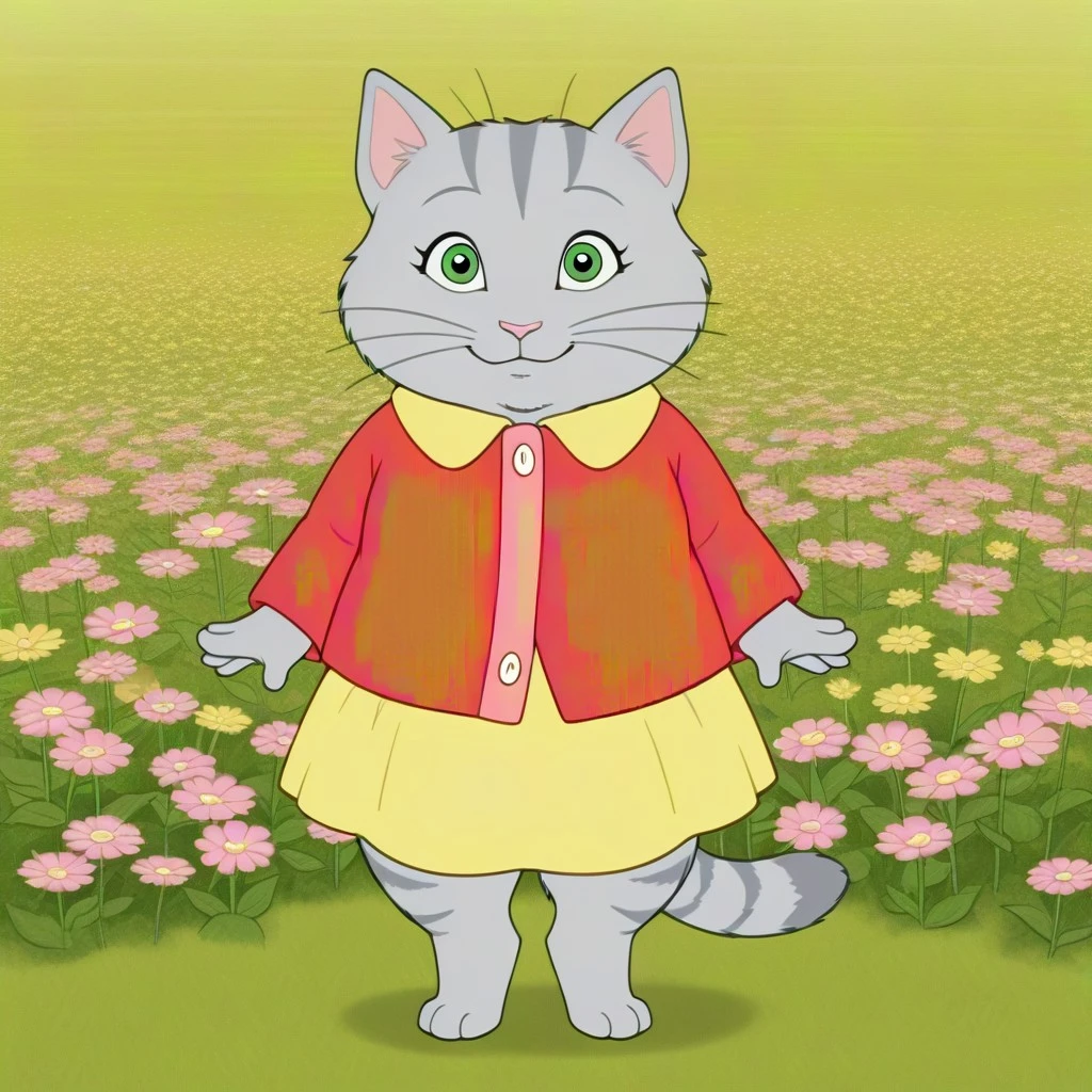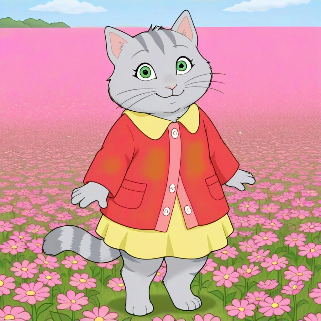 cat, cat girl, Grey fur, striped fur, green eyes, pink nose, whiskers, cat ears, striped cat tail, digigrade,