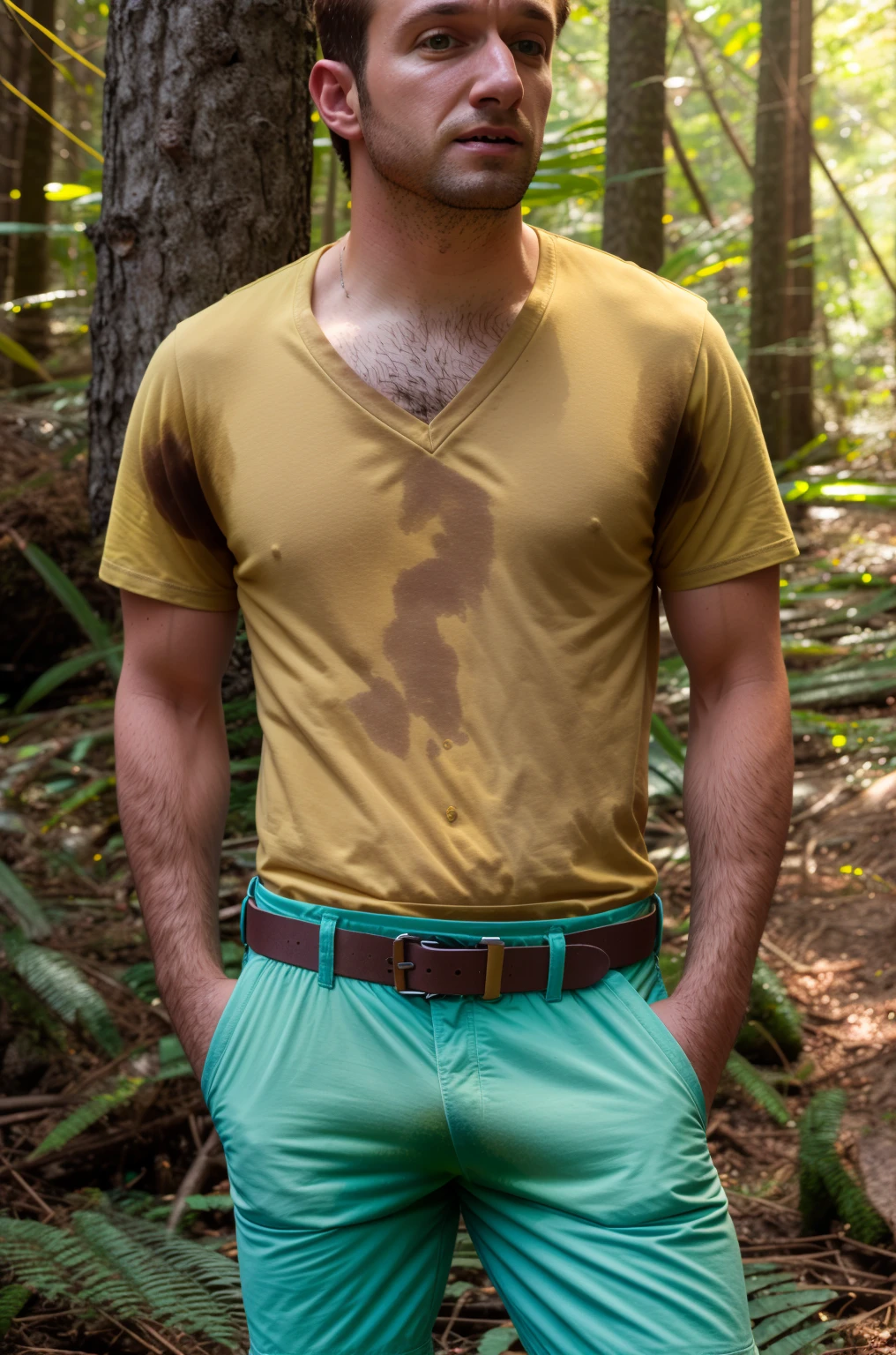 {side view|front} view of {Harrison Ford|Leonardo DiCaprio|Brad Pitt|Chris Hemsworth|Hugh Jackman} on his {shorts|suit pants|jeans:1)} wearing a {long sleeves|tank top|button|vneck|high crewneck} {light|dark}-__YetAnotherWildcardCollection-main/Colors/Basic__ (shirt with sweat:1.3) {sitting on the floor|running|lying resting on the ground} in a {forest|road|street|distant planet moon surface|marathon} alone, dynamic pose, {his arms are fully extended and he is posing for the camera|his arms are on his hips|his arms are pointing to {his armpits|the camera}|his arms are behind his head}, large (s3t on armpit:1.2), natural lighting, 4k uhd, dslr, high quality, Fujifilm XT3