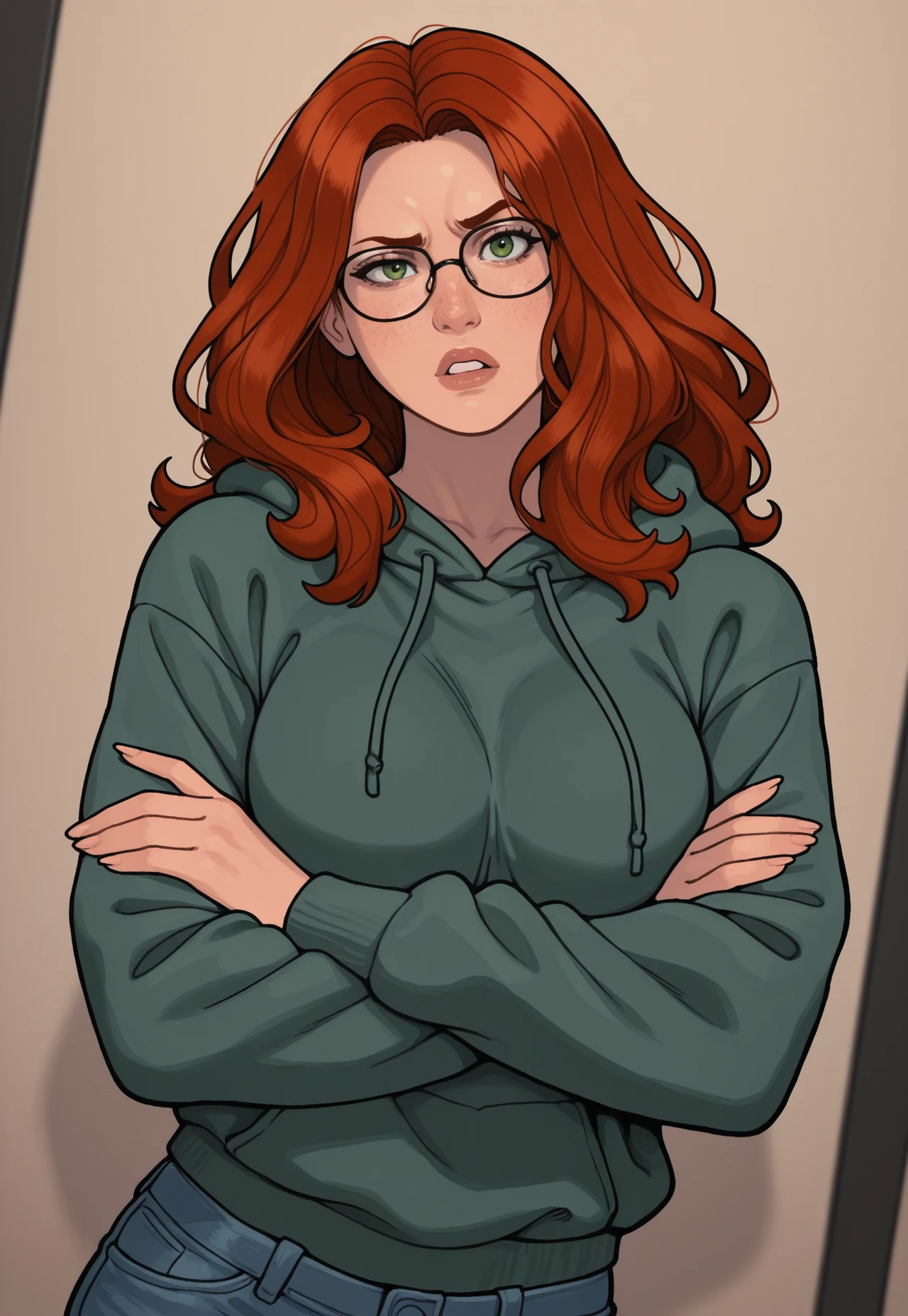 MorgKel, Red Hair, Green Eyes, Long Hair, Thick Wavy Hair, Freckles, , Glasses