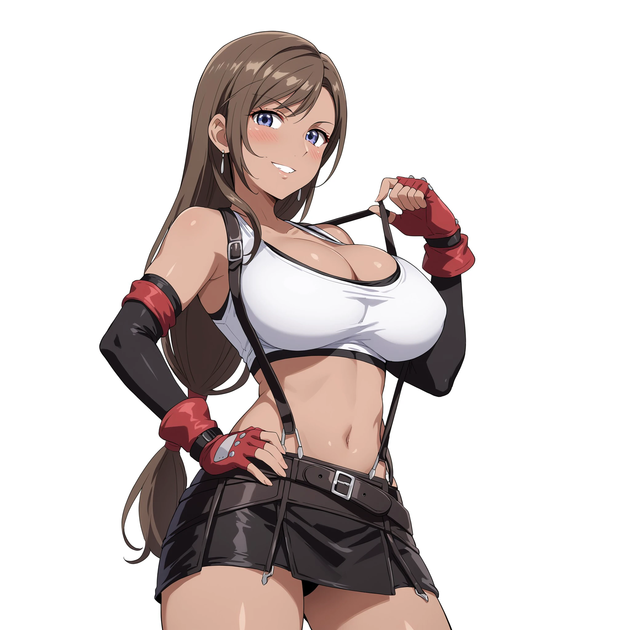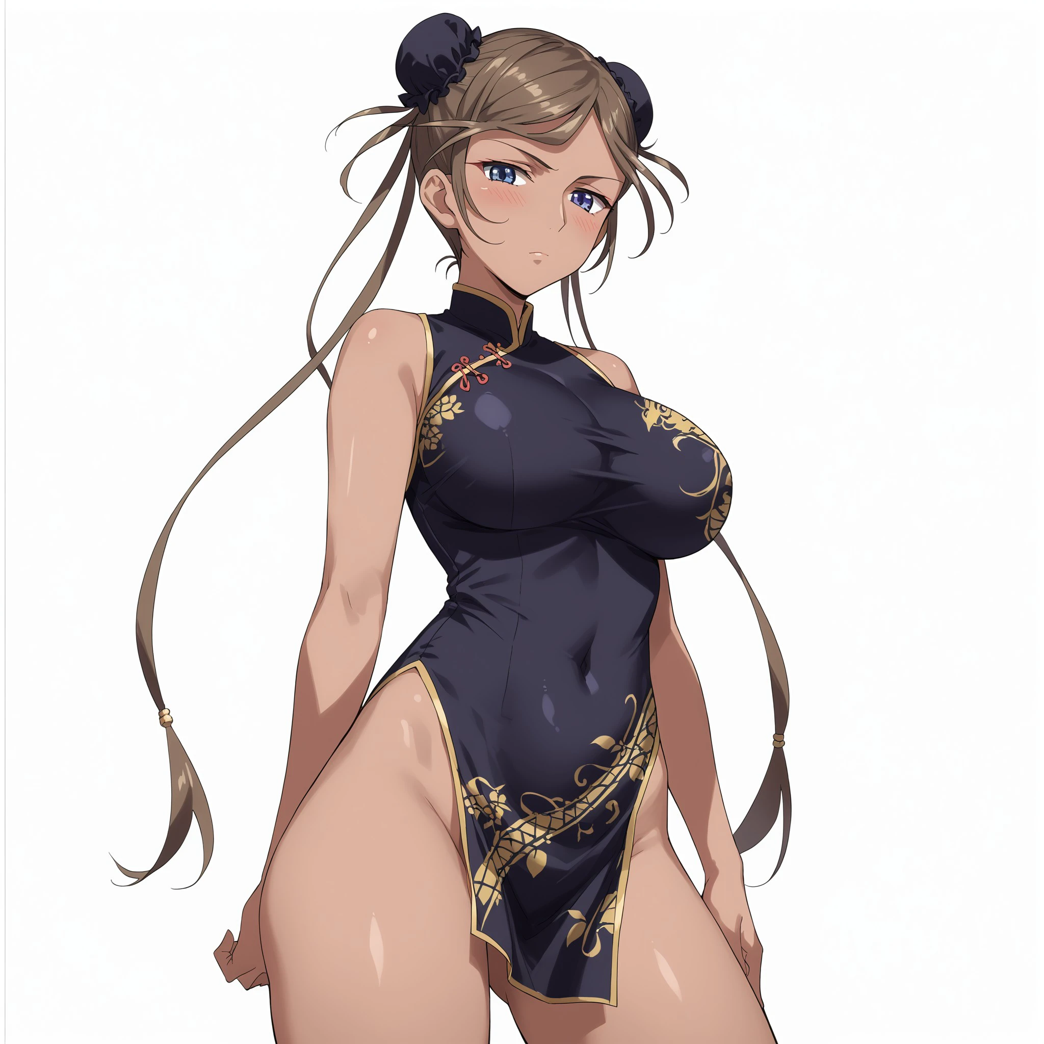 Katerea Leviathan, brown hair, long HAIR, dark-skinned female, blue eyes, Big breast, curvy, wide hips,