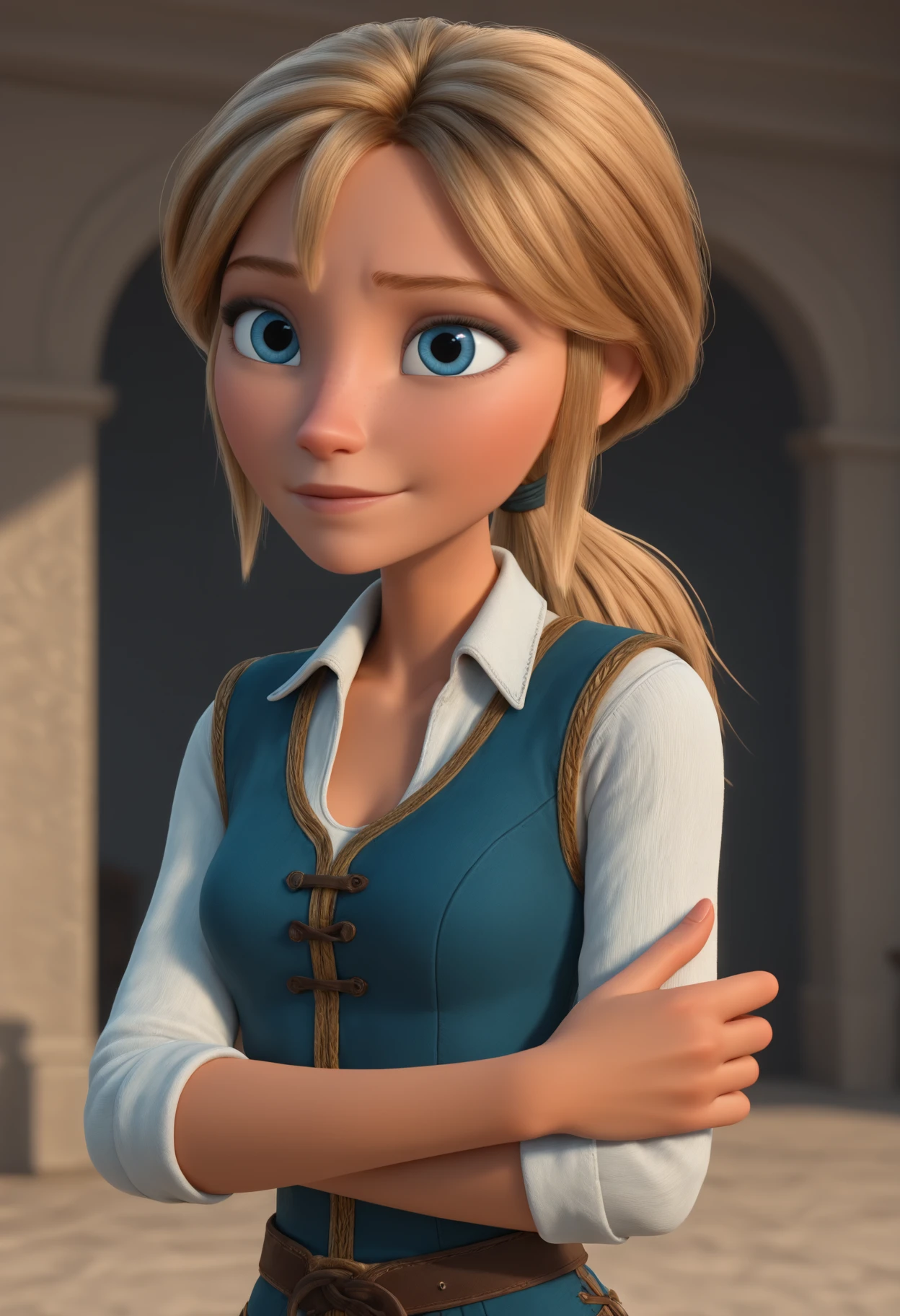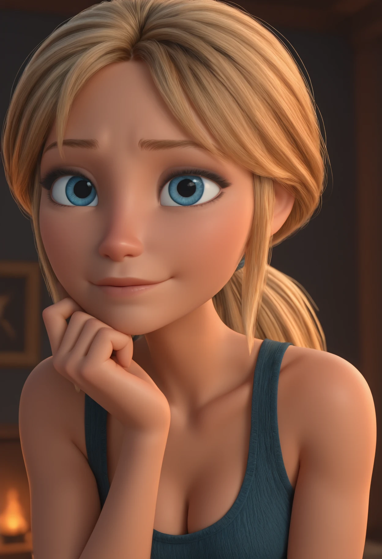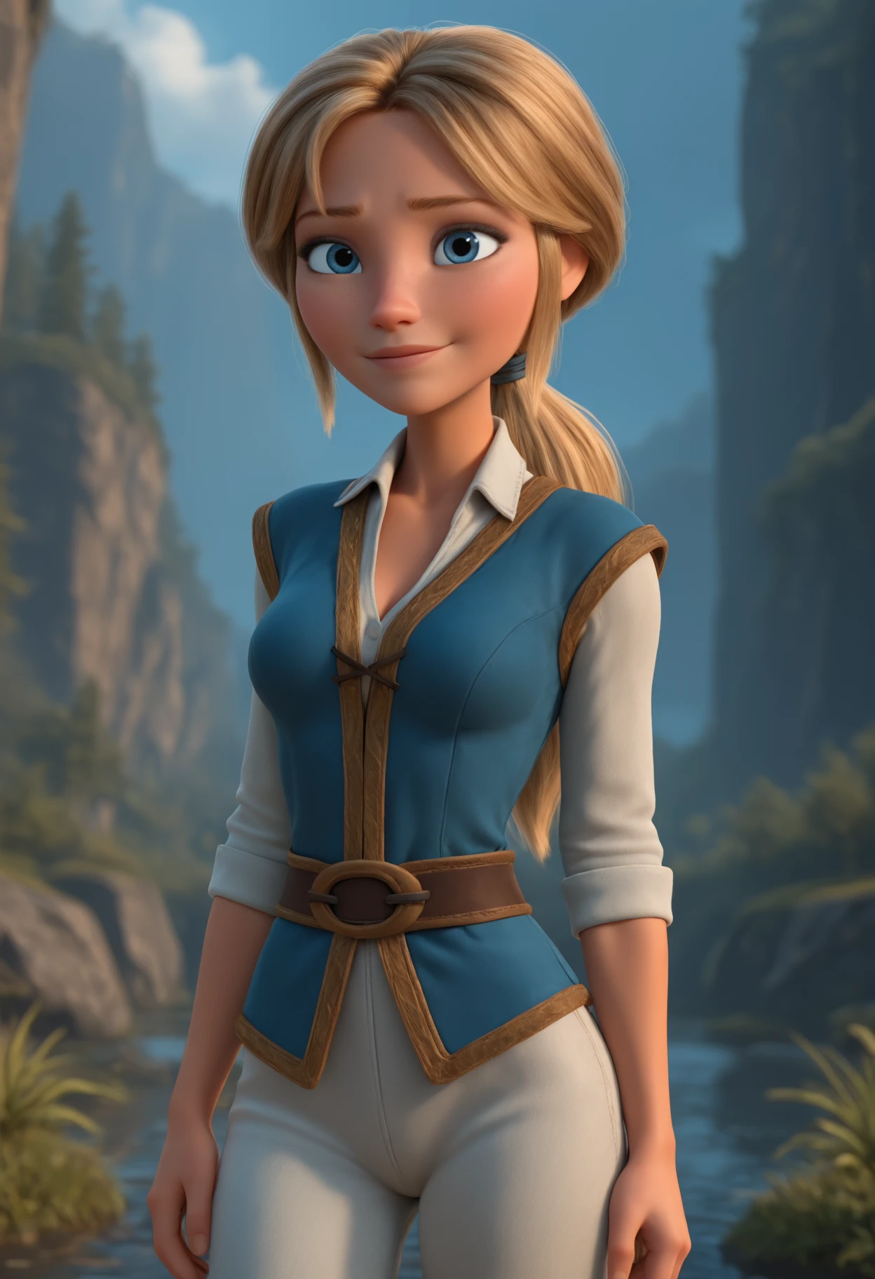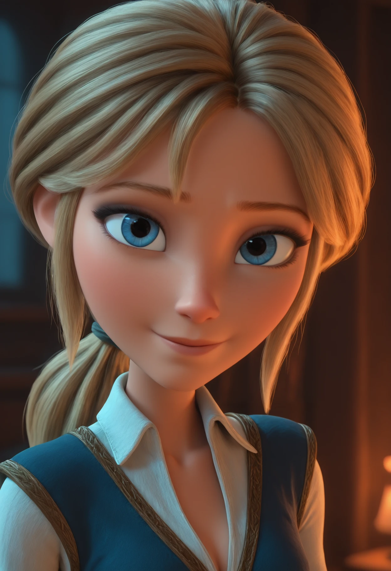 Mar3y, blue eyes, blonde hair, low ponytail