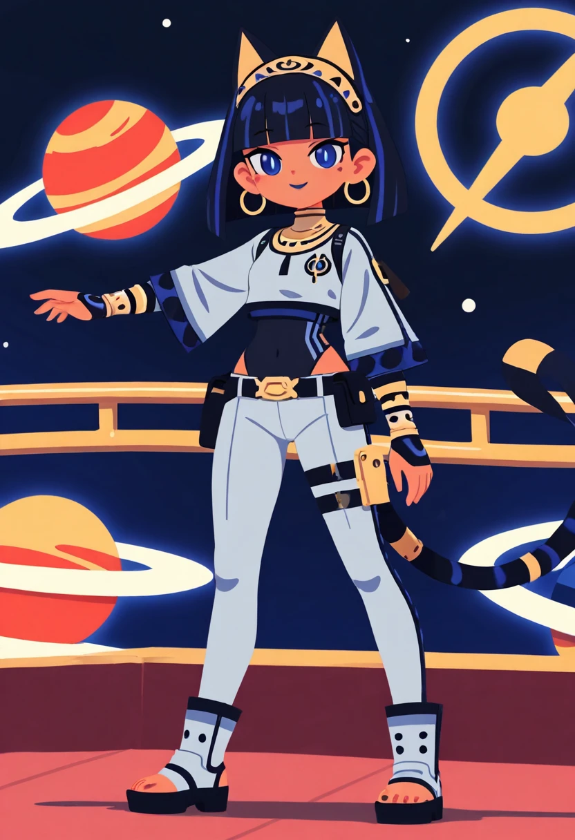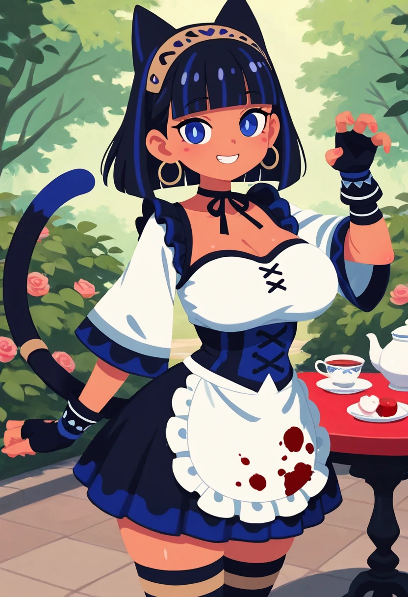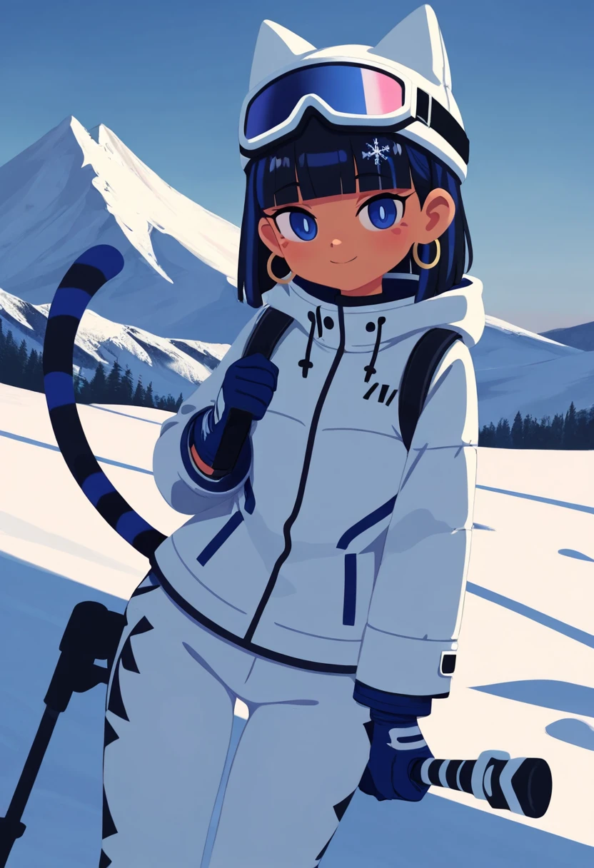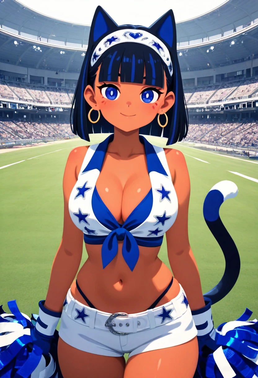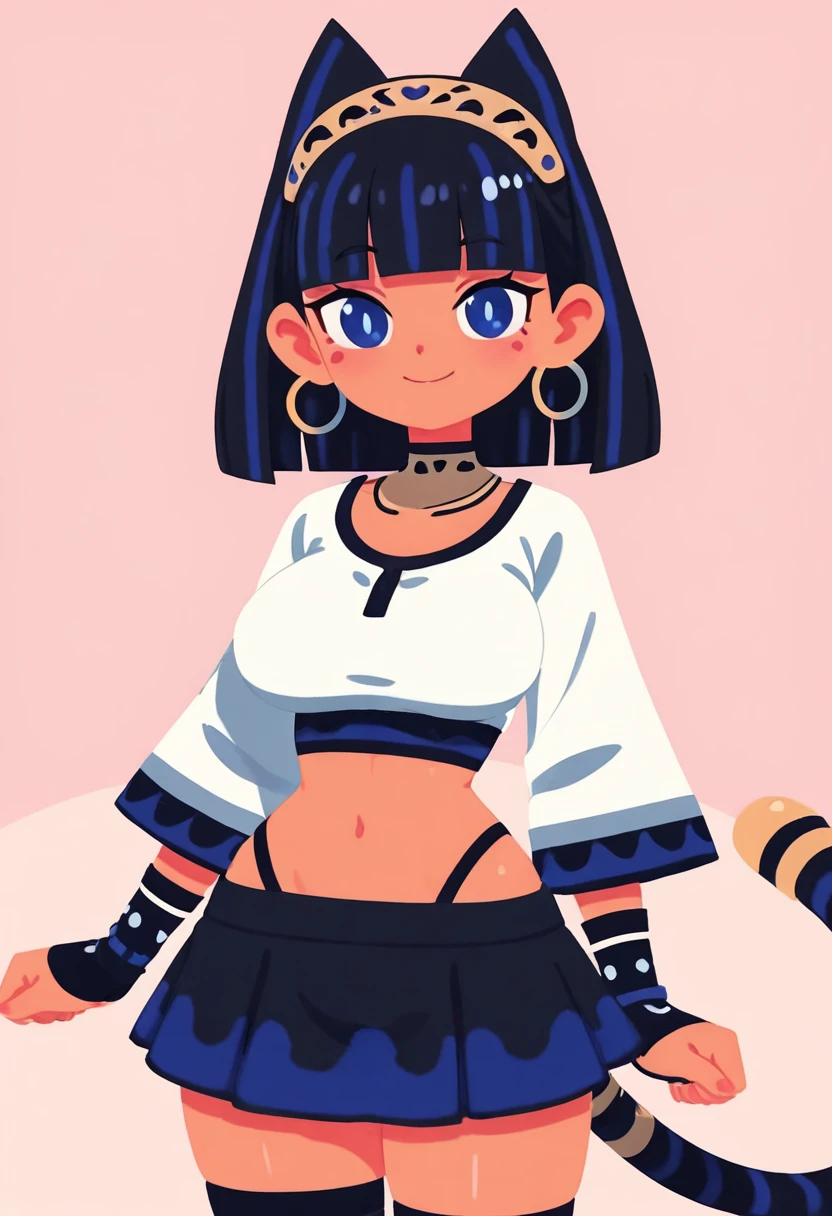 hoop earrings, heaband, choker, jewelry, bracelet, white shirt, cropped shirt, midriff, miniskirt, cat tail,