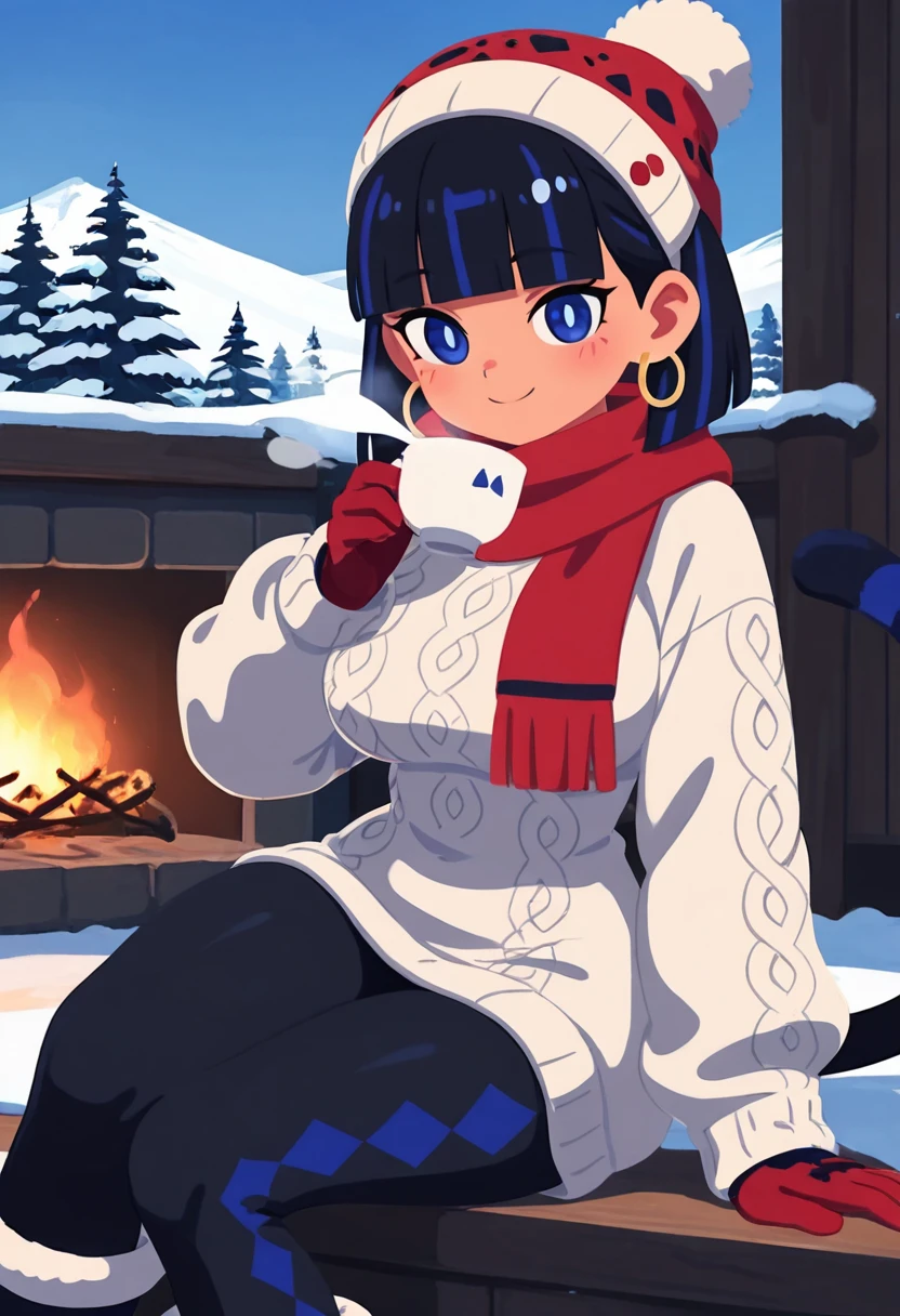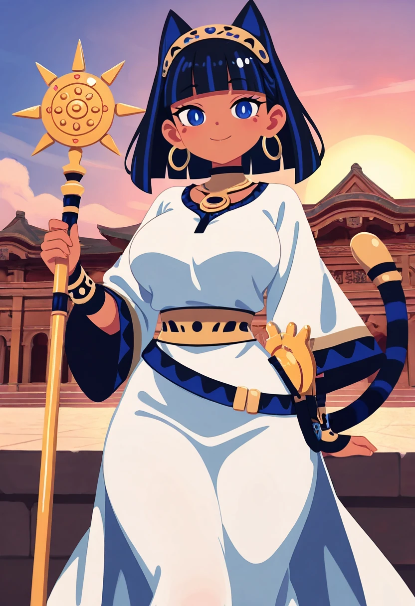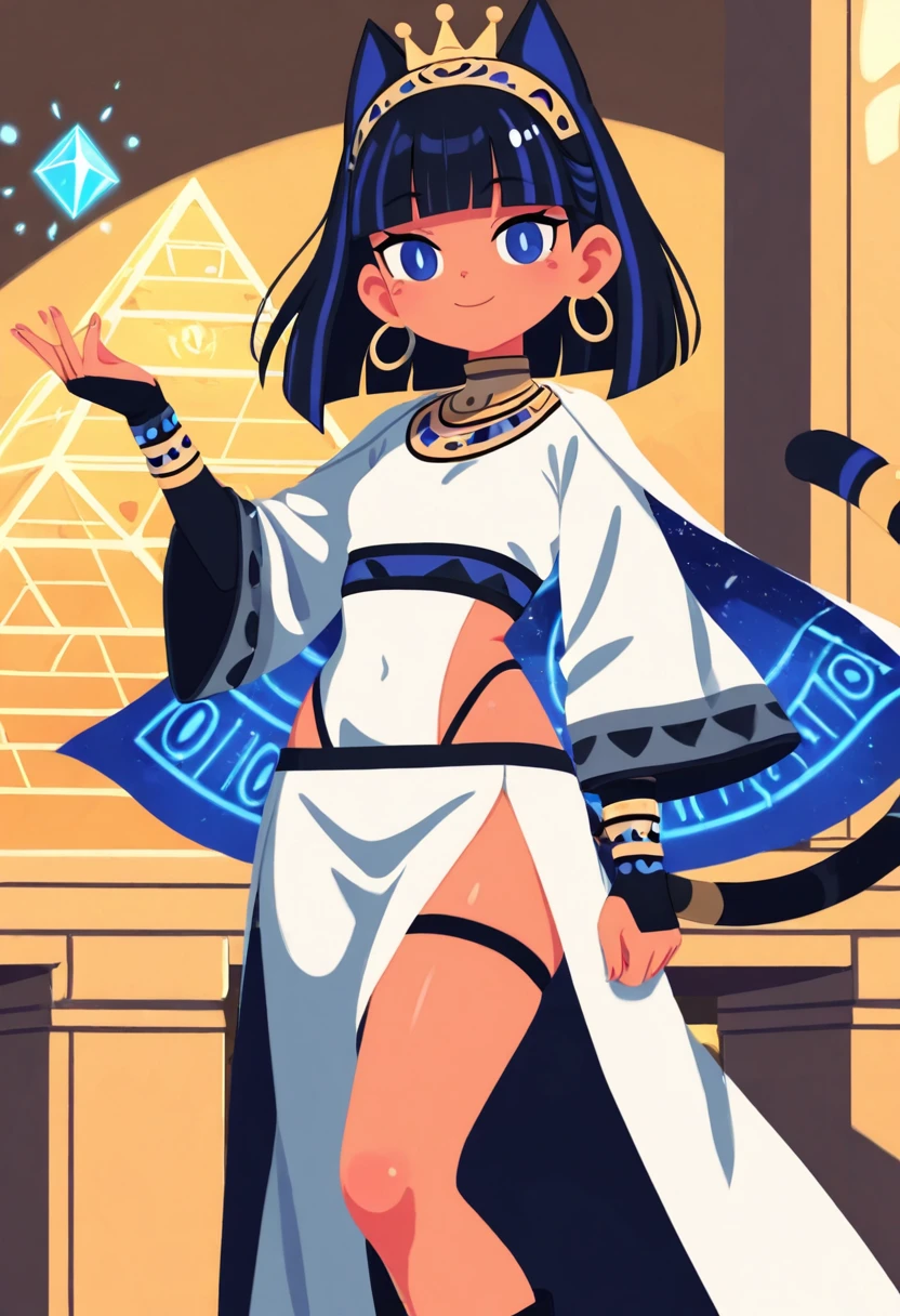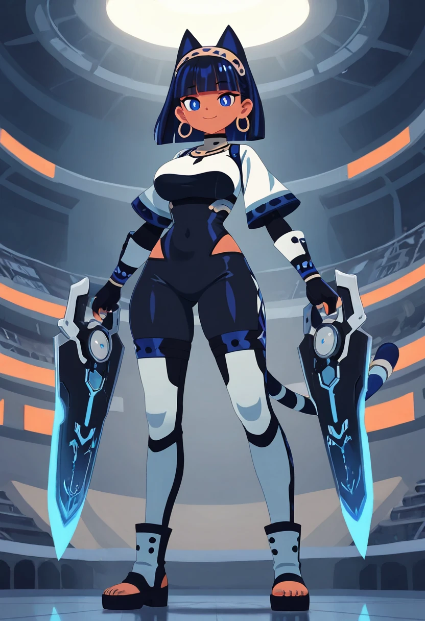 NileCitronOC, blue eyes, black hair, blue hair, short hair, blunt bangs, dark skin,