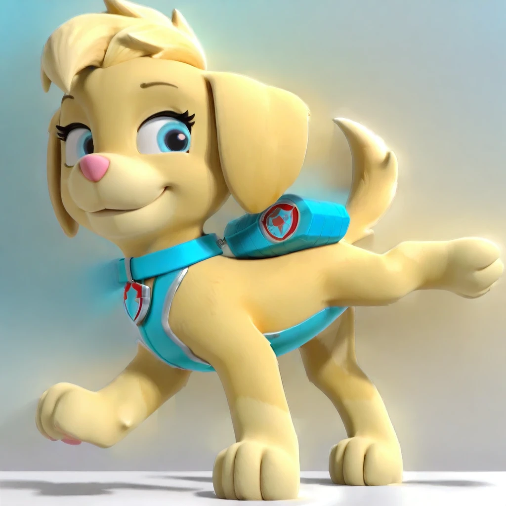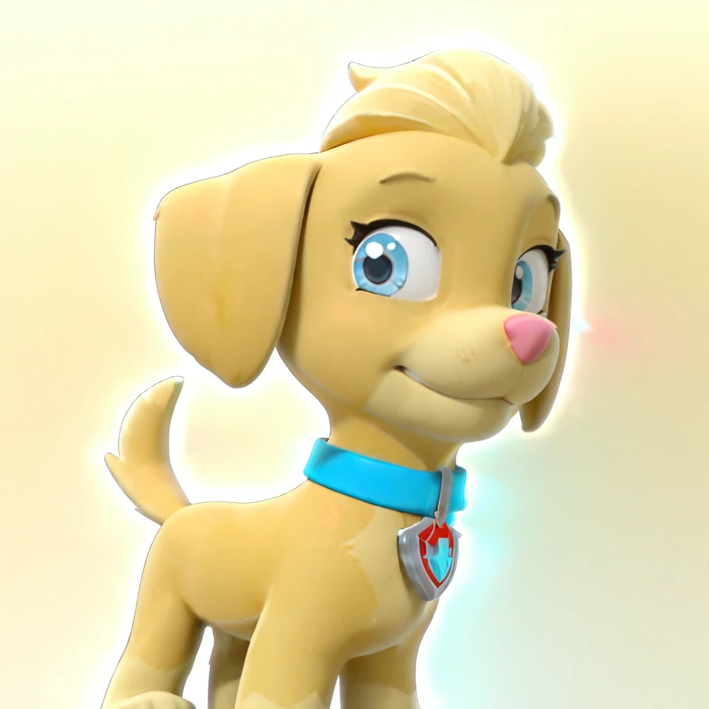 ellapawpatrol_il, dog, female, yellow fur, blonde hair, feral, blue eyes, hair to front, collar