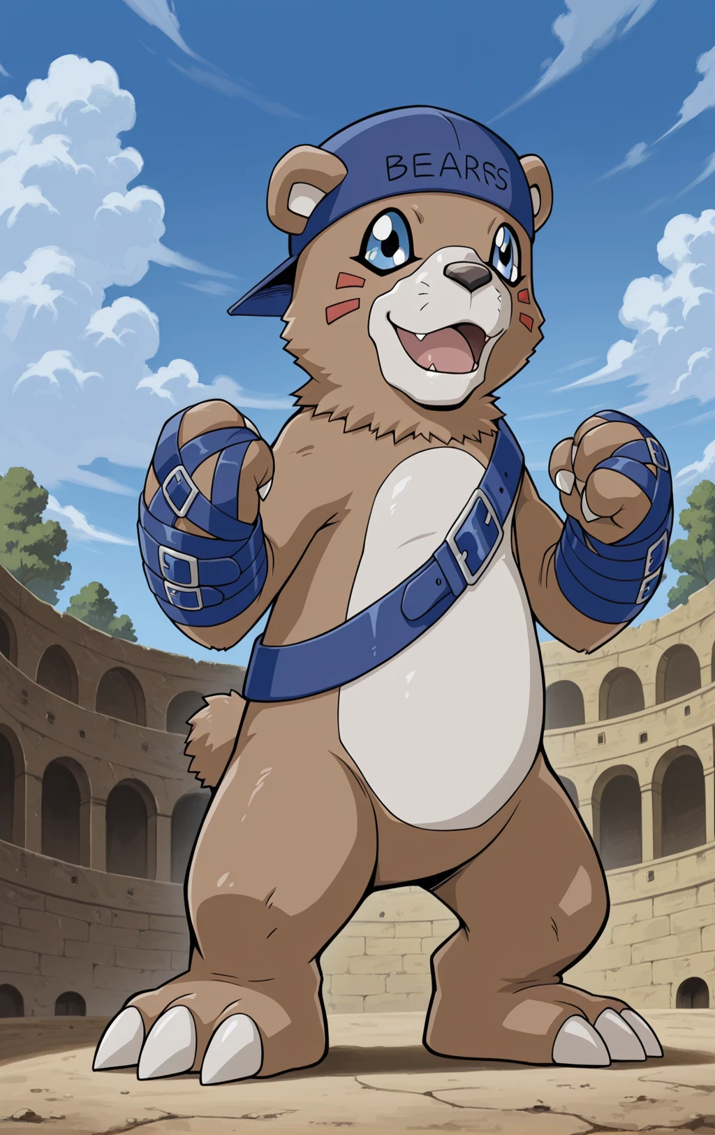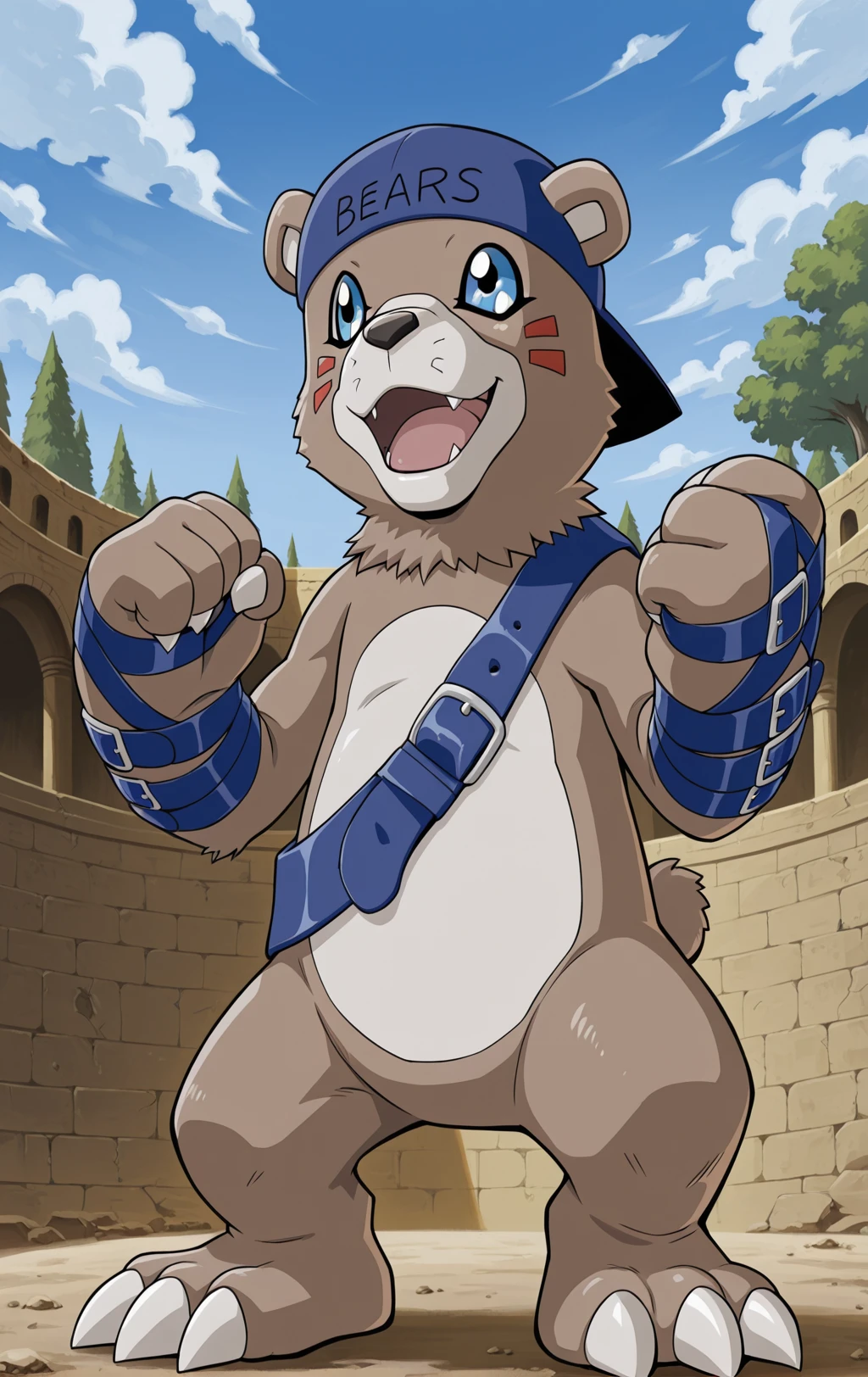 Bearmon is best known as the Child / Rookie form of Marsmon, a member of the Olympus XIII. His other main evolutions are Gryzmon and Grappu Leomon. However, in most later games he appeared in, his evolution line was left incomplete—most notably due to Marsmon being absent from those titles, with his line being filled by randomly chosen Digimon such as Were Garurumon (Black), Monzaemon, Pandamon, Babamon, Dino Tigermon, and Bancho Leomon.
