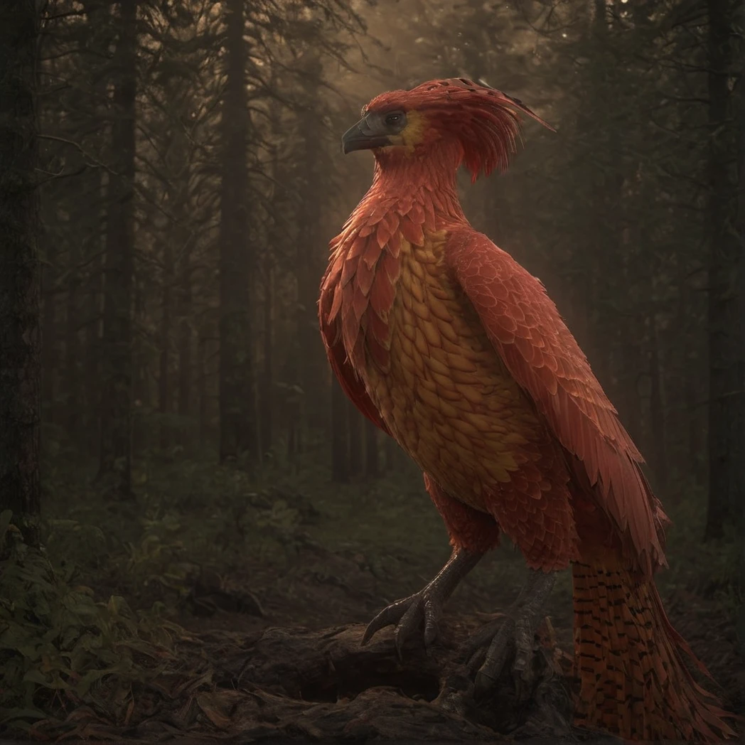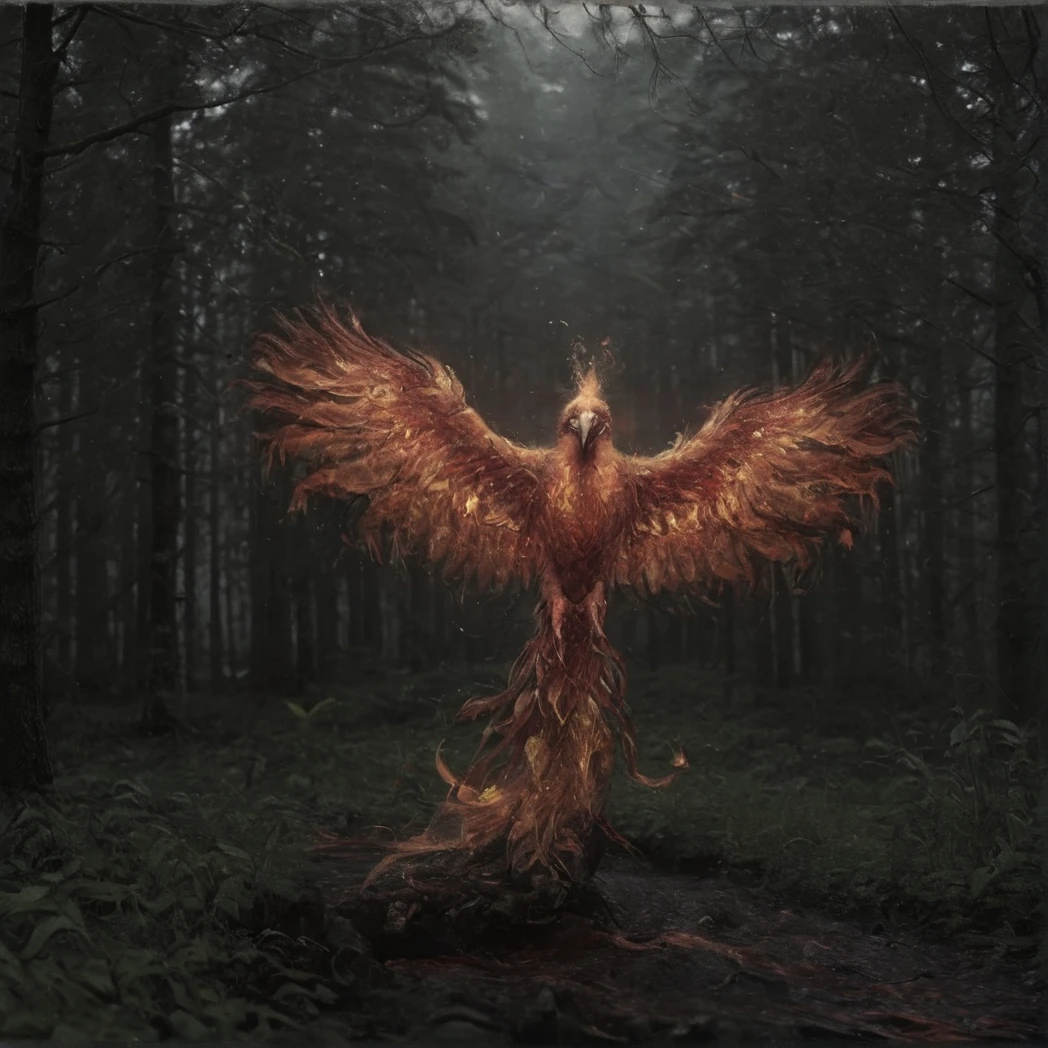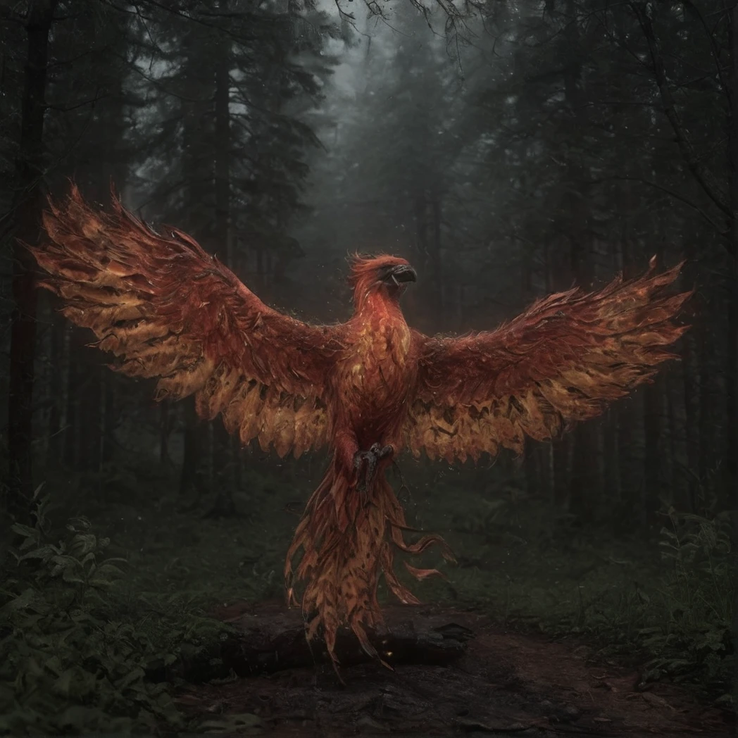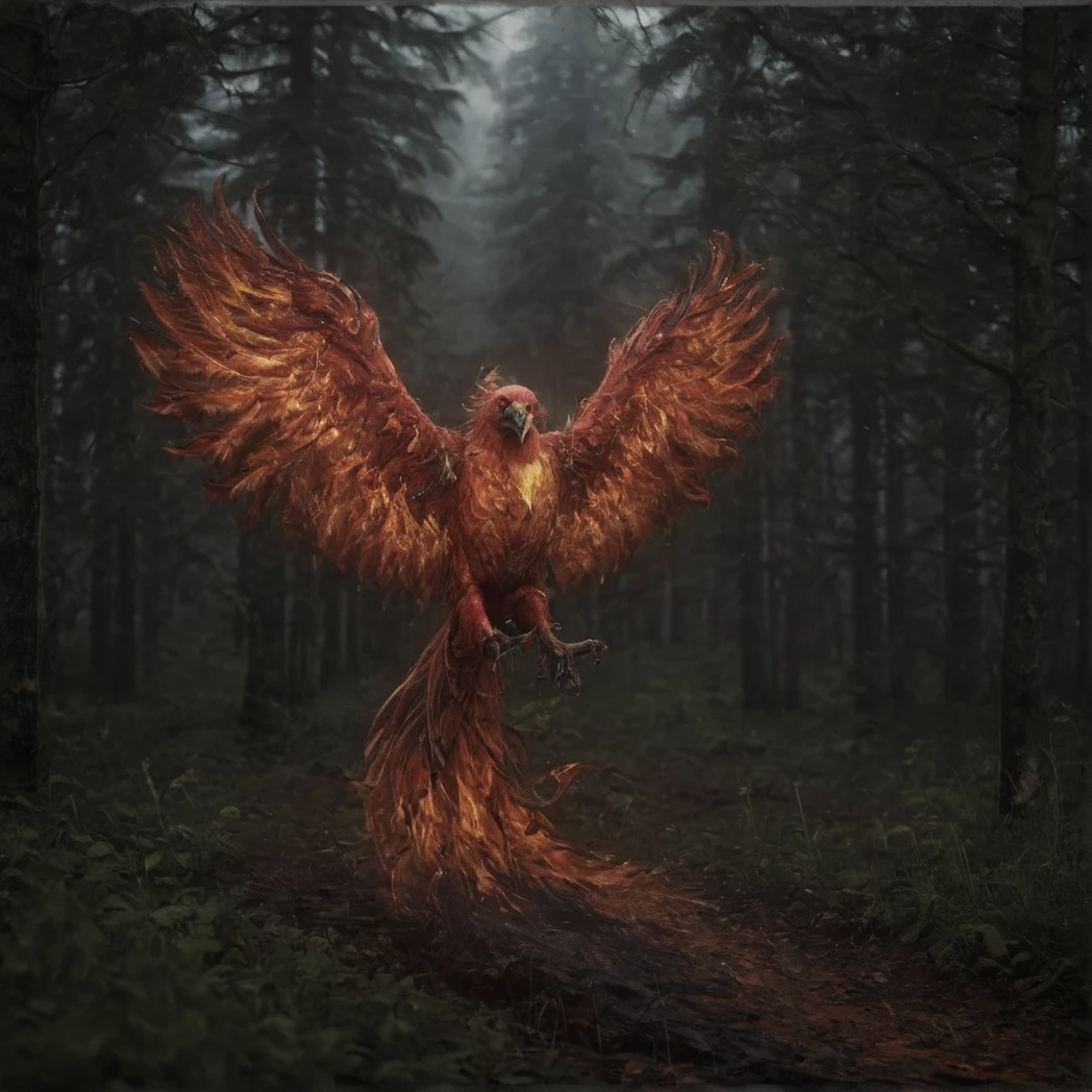 makes a Phoenix use words like "A bird made of fire, Firebird, Legendary, animal focus, Mid-flight, Flying, With wings open,"