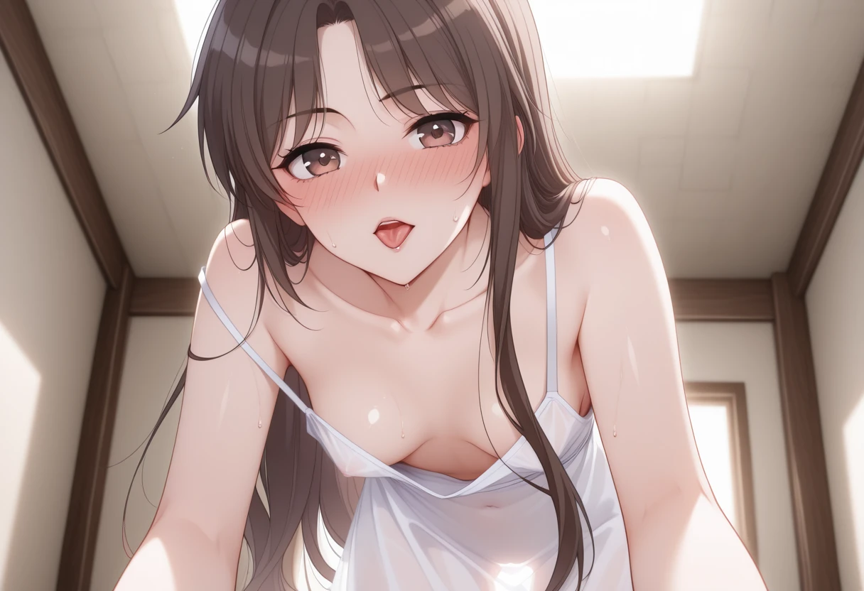 brown eyes,long hair, brown hair, small breasts,