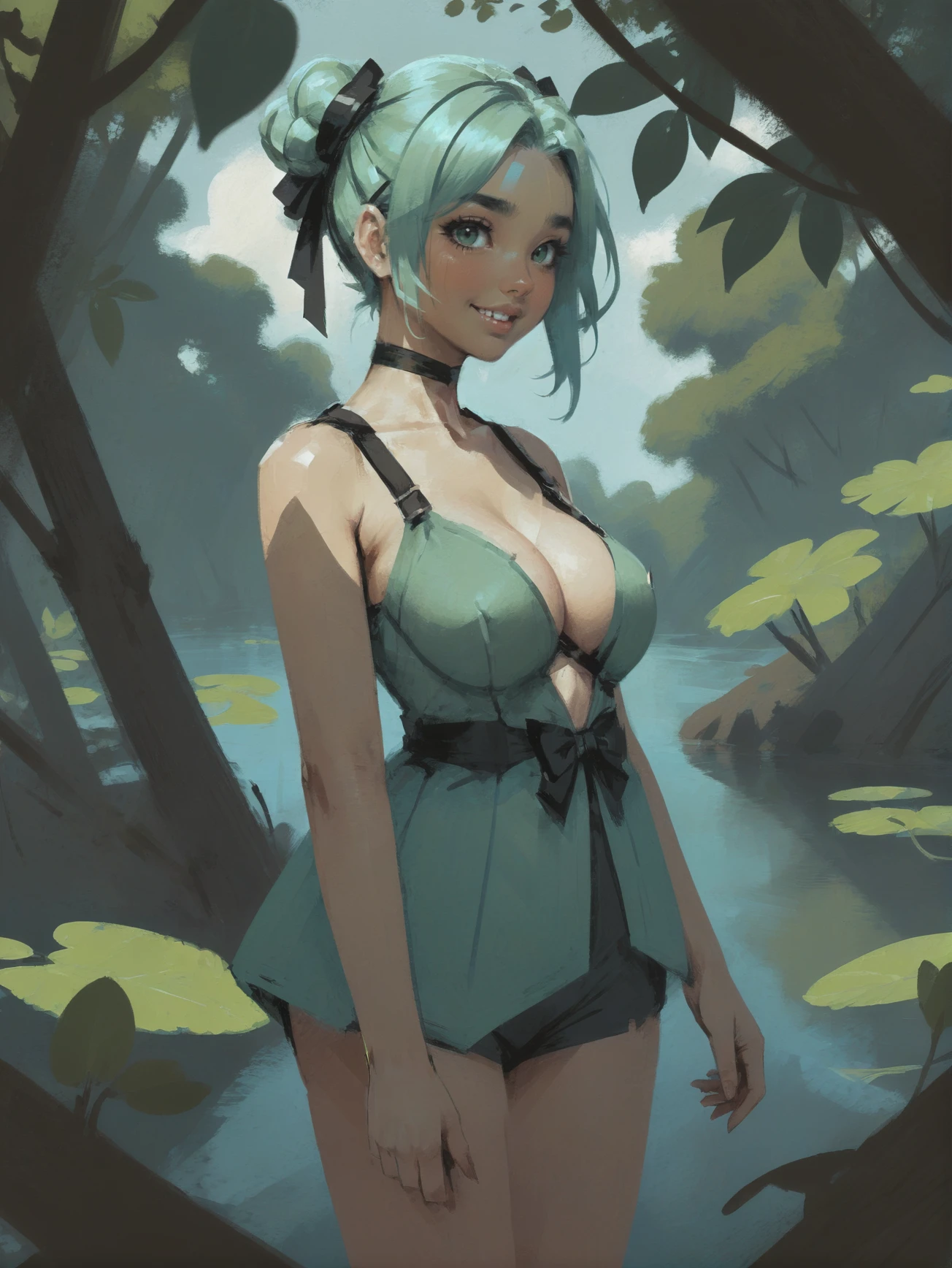 If digital speedpainting were a thing back in the cold war era, it might have looked a bit like this -- brushy digital art with a faux-vintage feel. It will also do anime if you ask nicely.