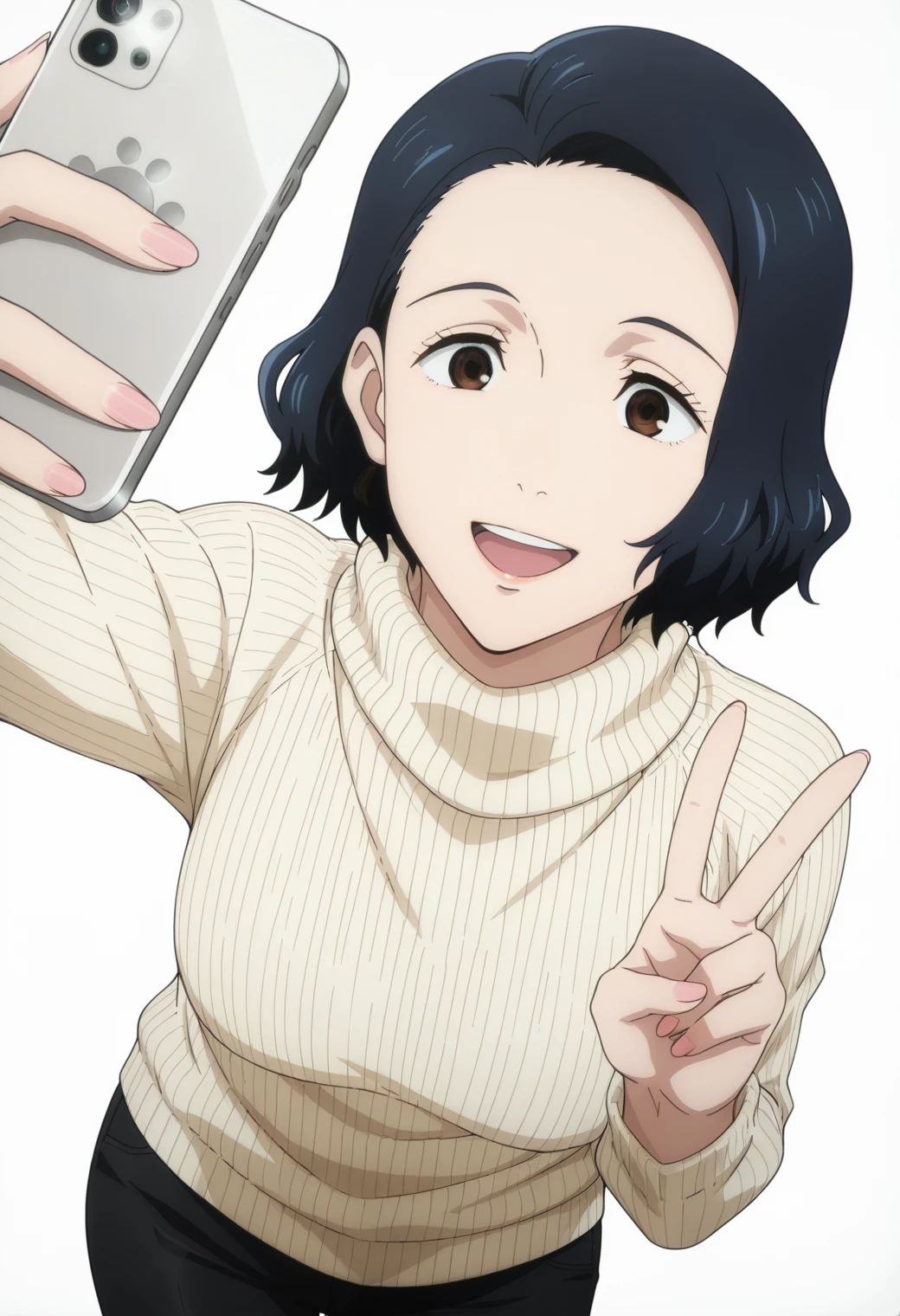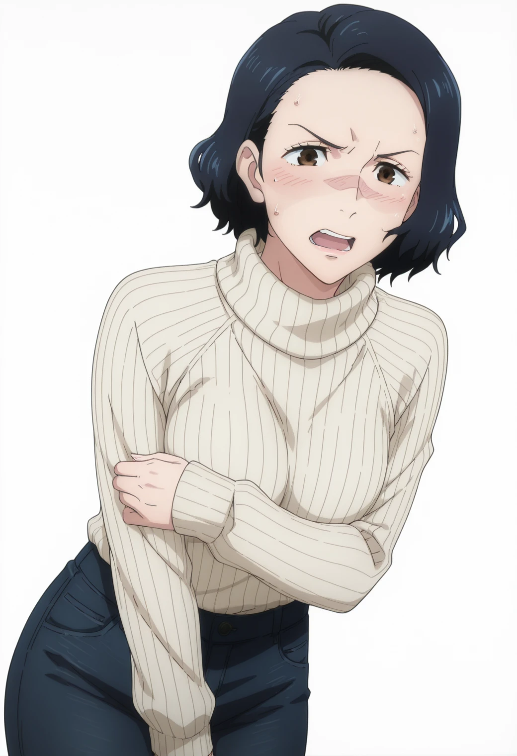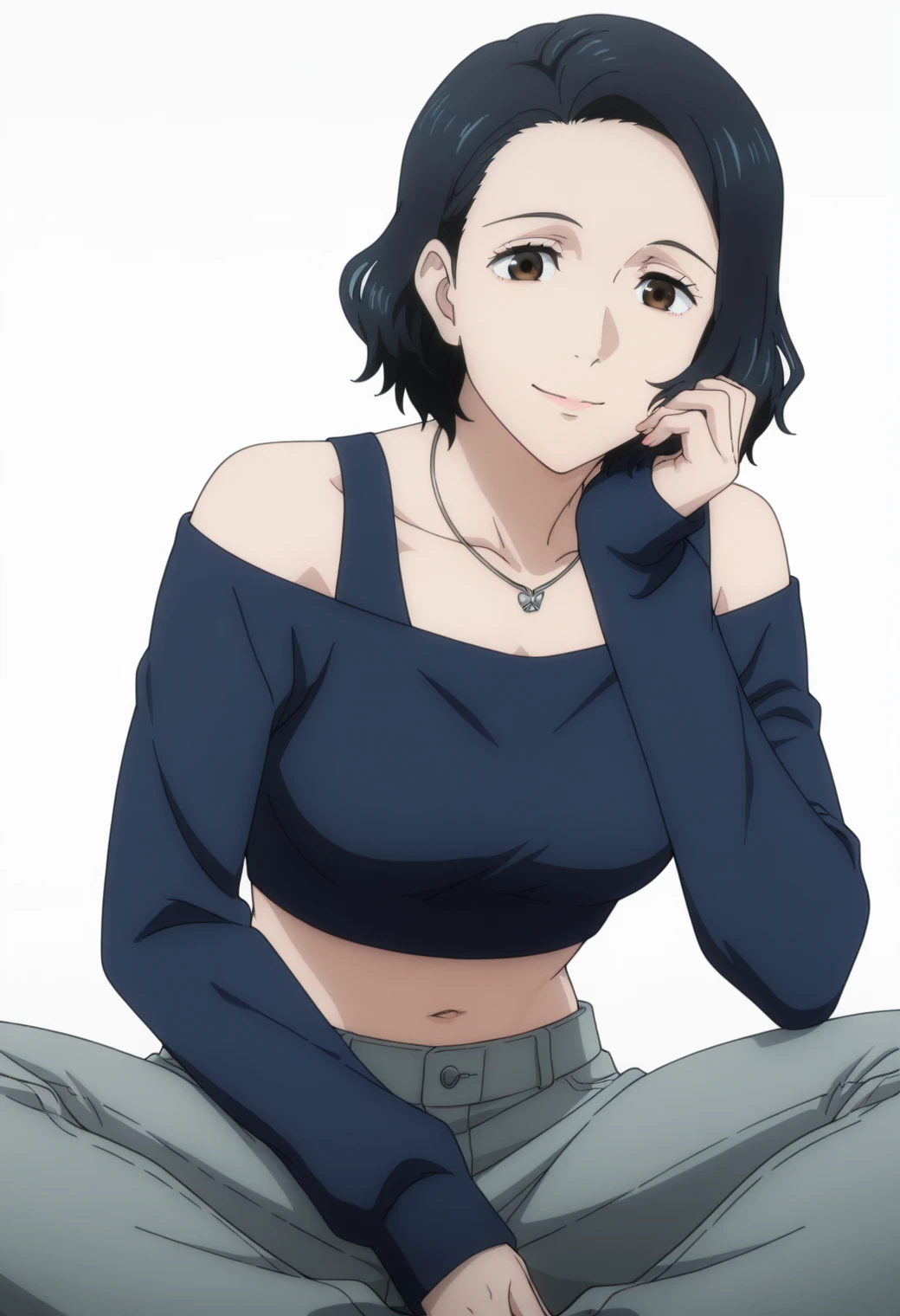 Pony: ynagi, long sleeve shirt, red lips, mature female, black pants,
