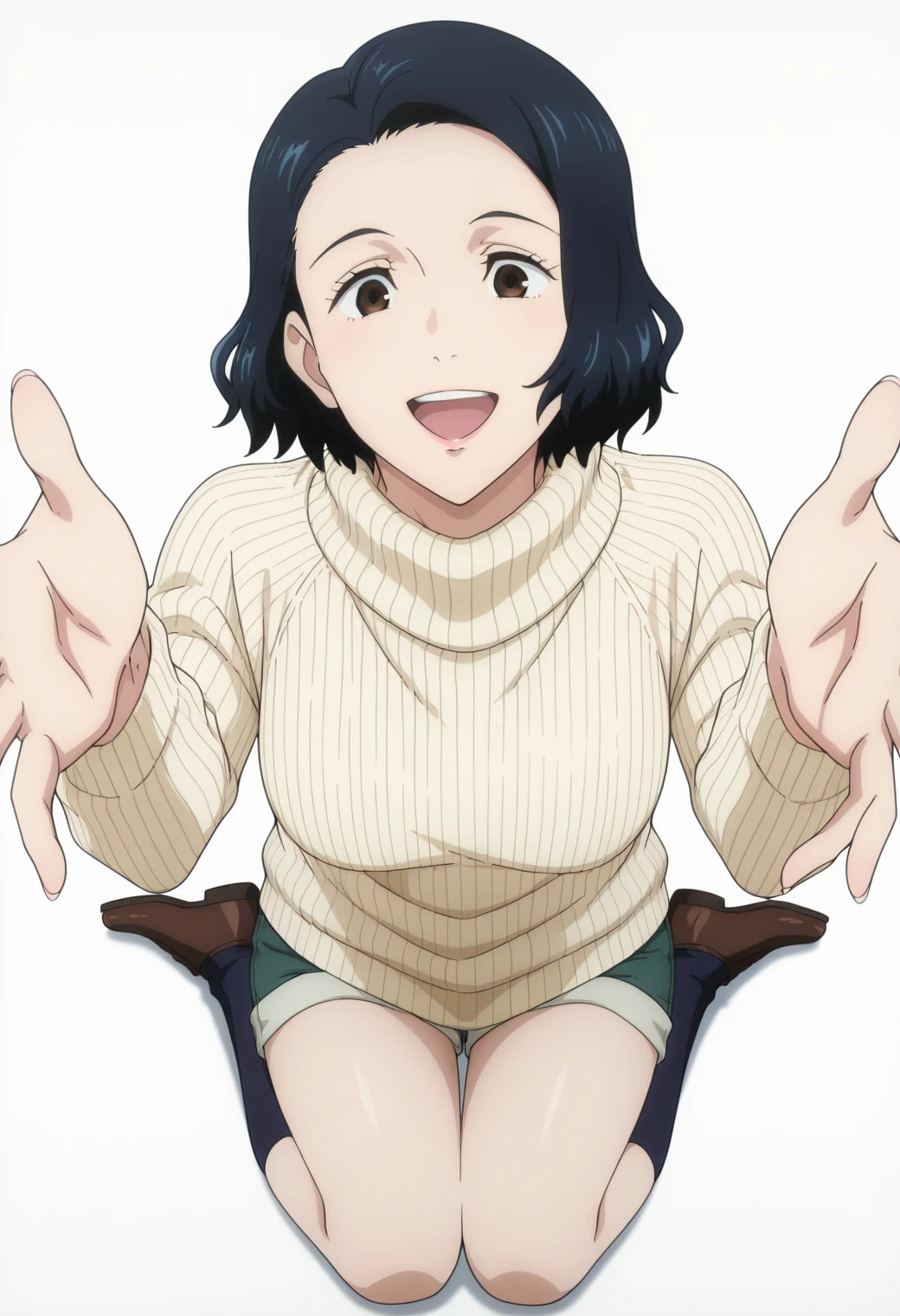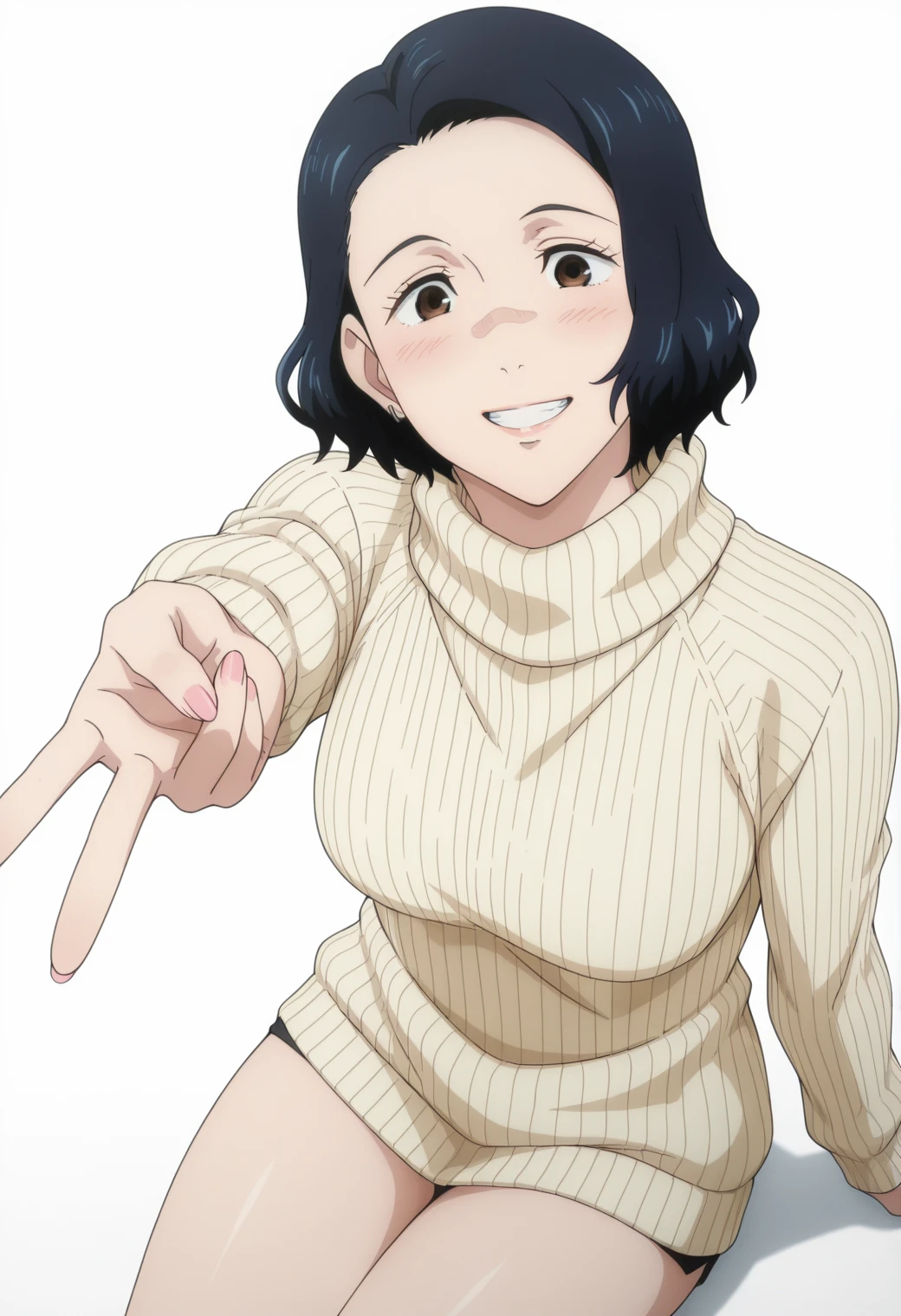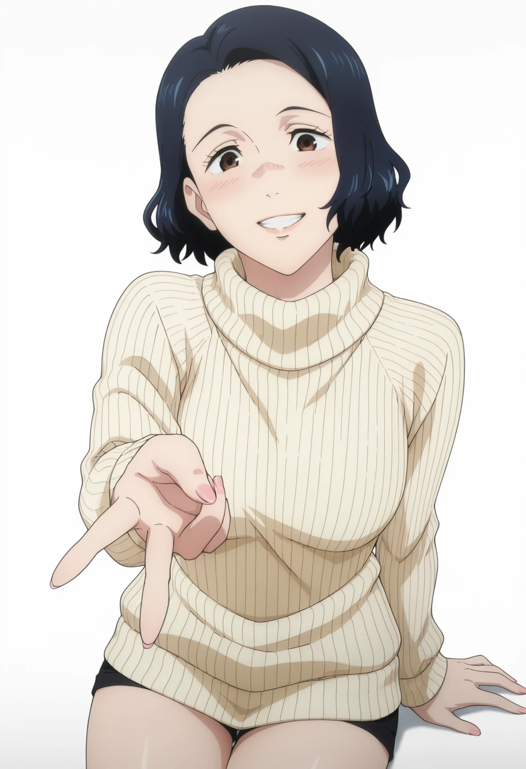 Pony: ynagi, long sleeve shirt, red lips, mature female, black pants,