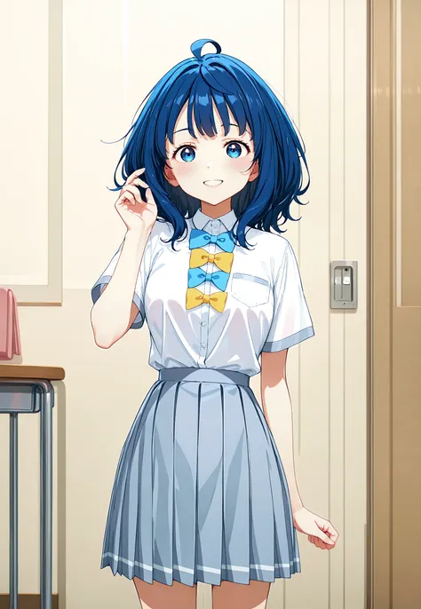 1girl, anna yannami, blue hair, blue eyes, school uniform