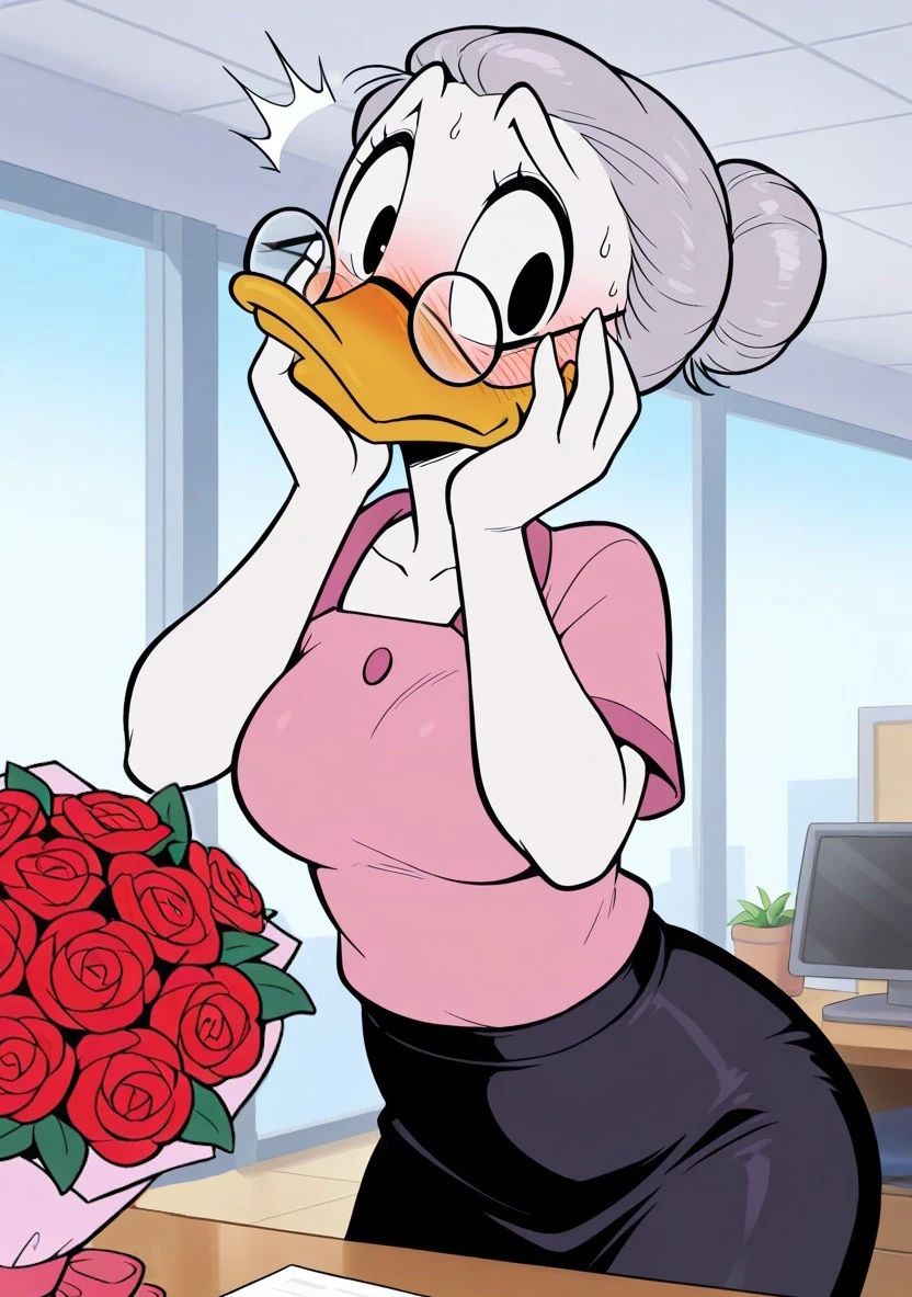Mrs. Featherby / Mrs. Quackfaster from Ducktales. I know they are technically 2 different characters, but I felt they were so similar I just merged them together.