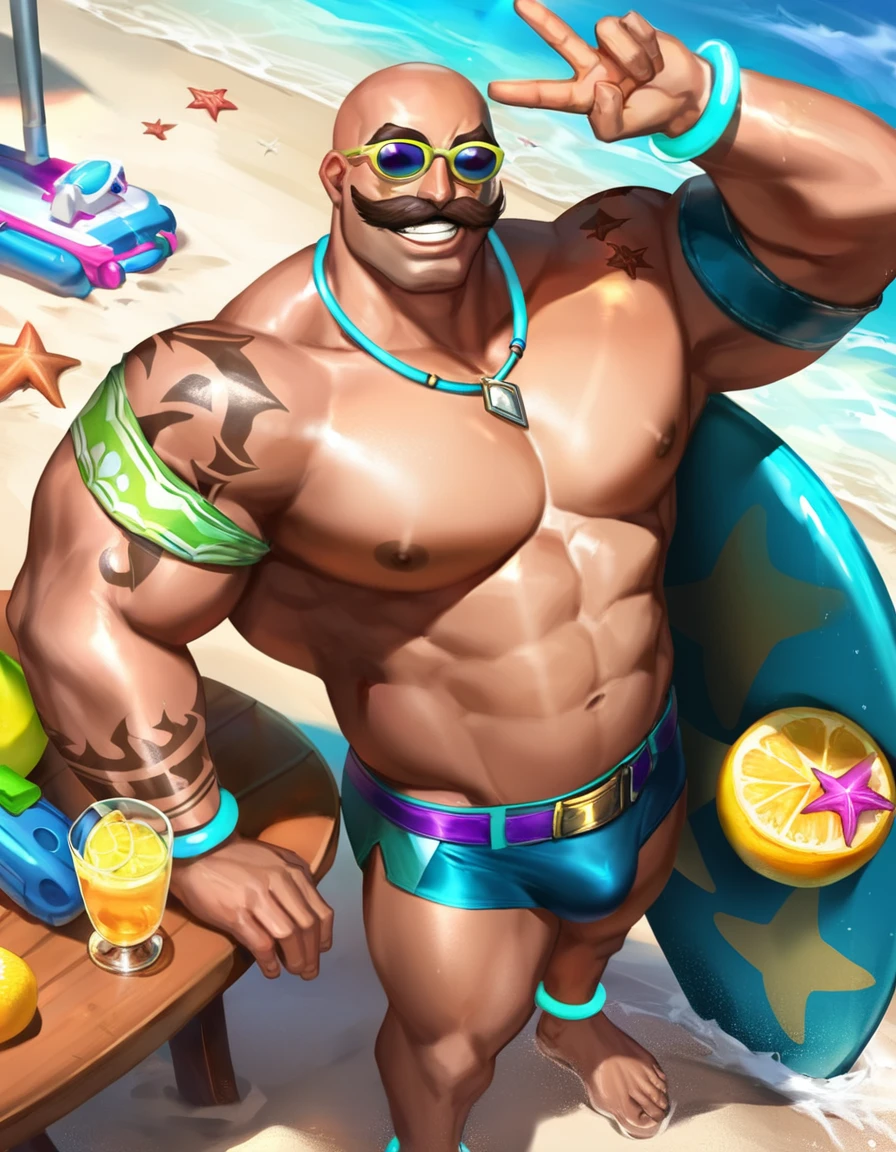 英雄联盟中布隆的原版、圣诞皮肤和泳池派对皮肤