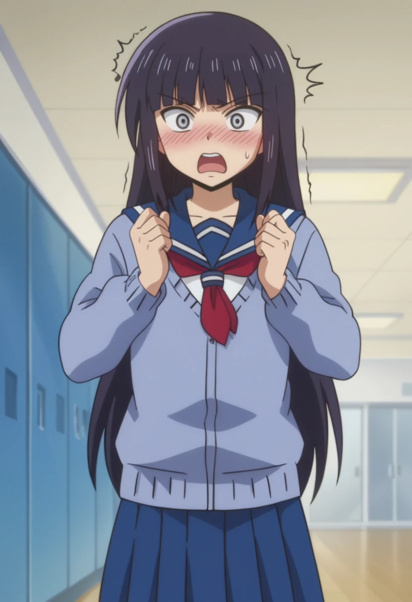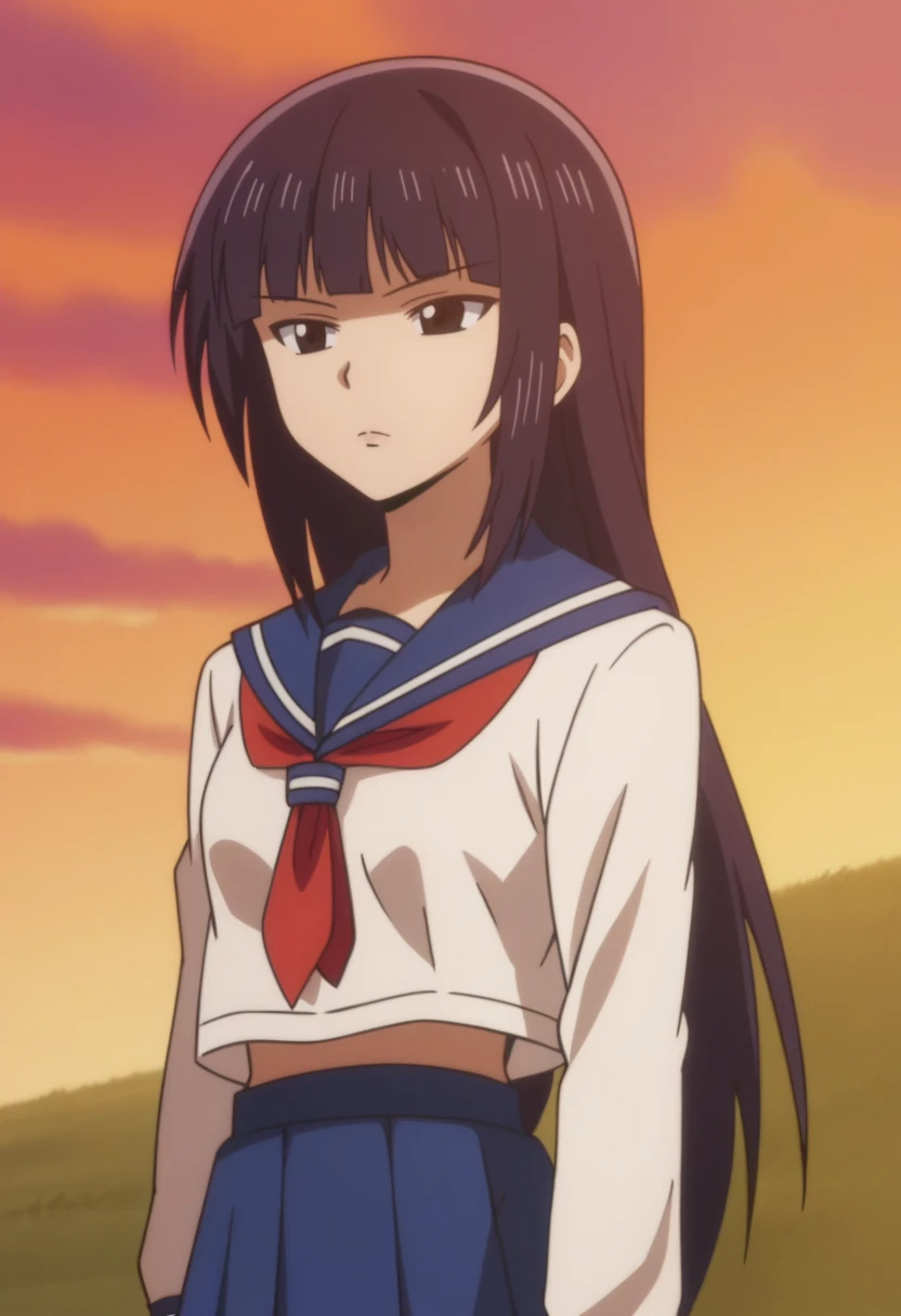 yassan, 1girl, black hair, long hair, school uniform, serafuku, skirt,
