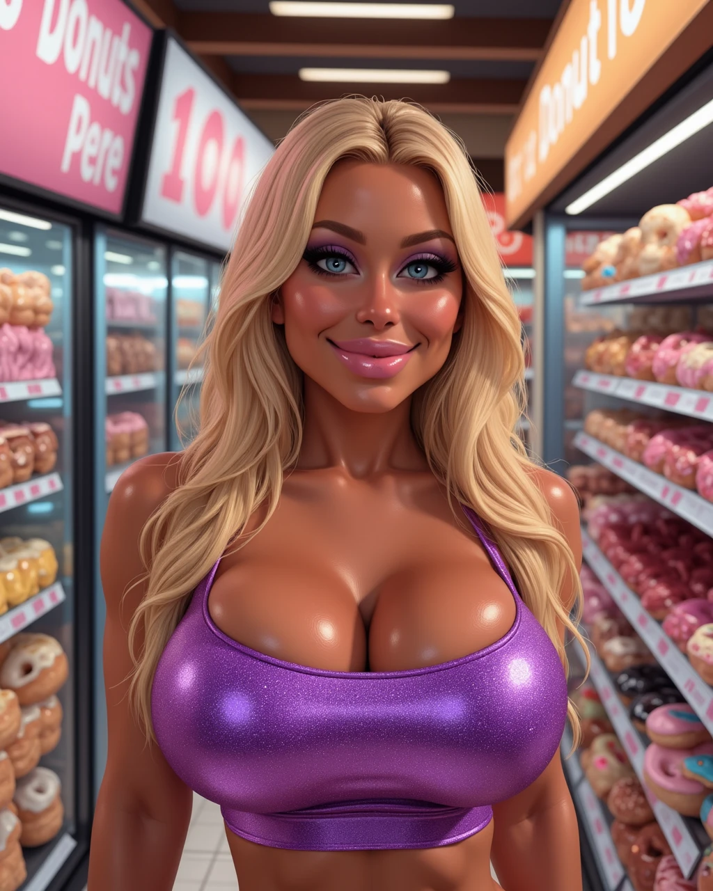 Creates images of illustrated / photographic bimbos in the style of artist The Pit.