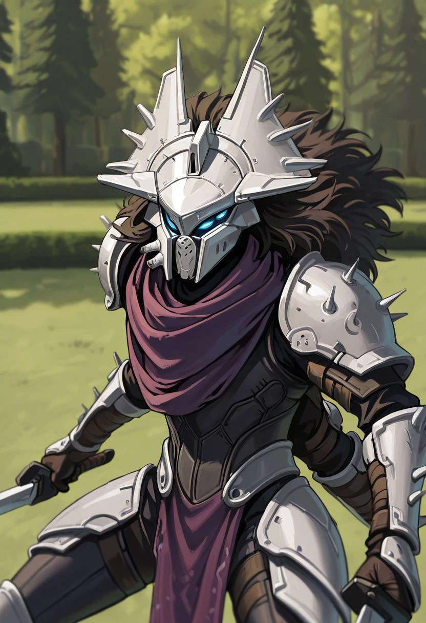 eliksni-armour captain,shoulder spikes,purple scarf,fur trim,purple capeATracks Form: