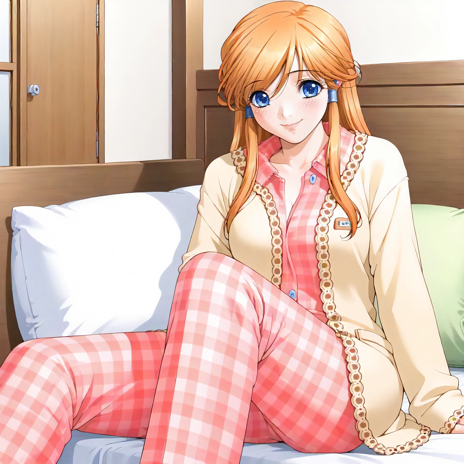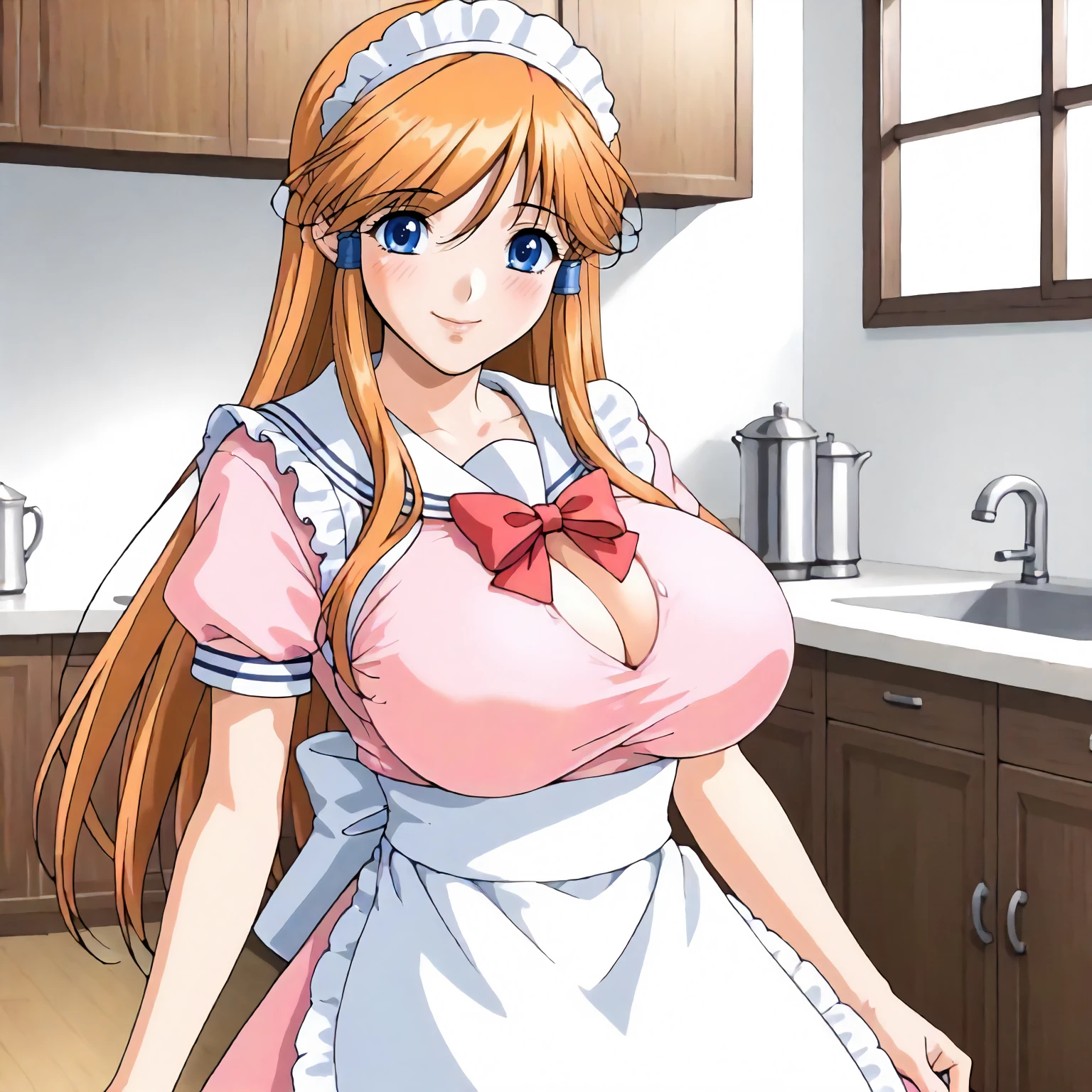 MikanHanamaru,1girl,orange hair,long hair,hair tubes,blue eyes, large breasts,